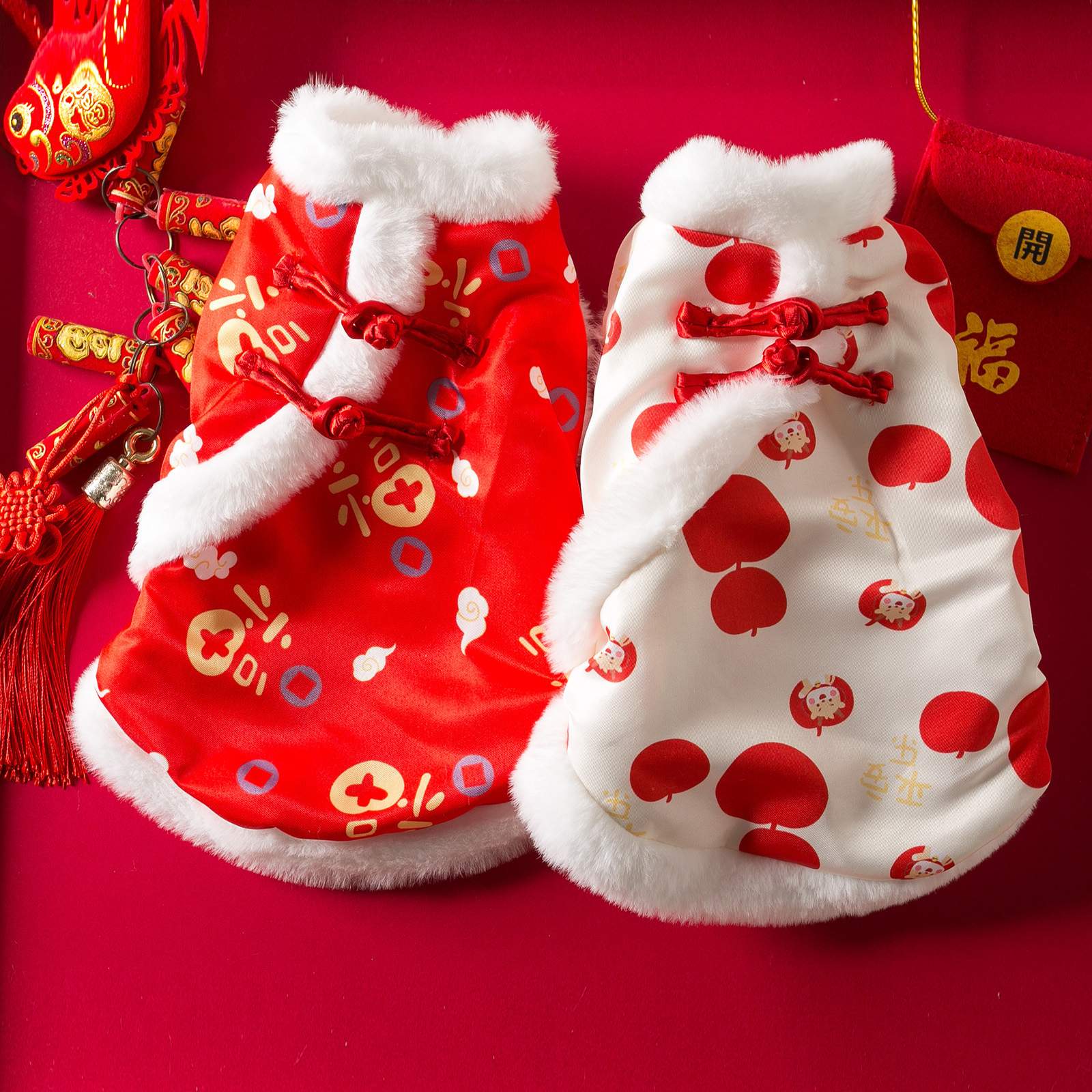 ペットの犬の新年の新しいローブ、厚くベルベットの暖かいお祝いの唐スーツ、中小型犬と猫の服