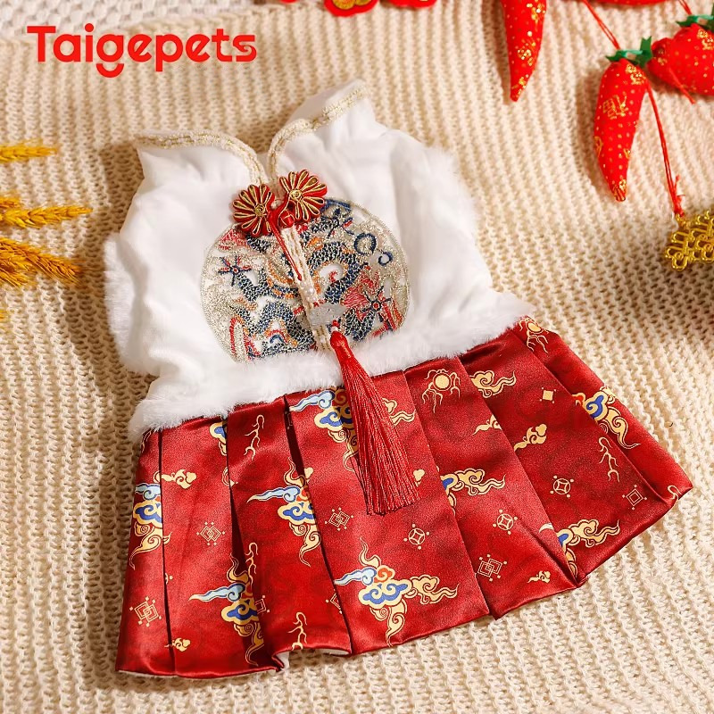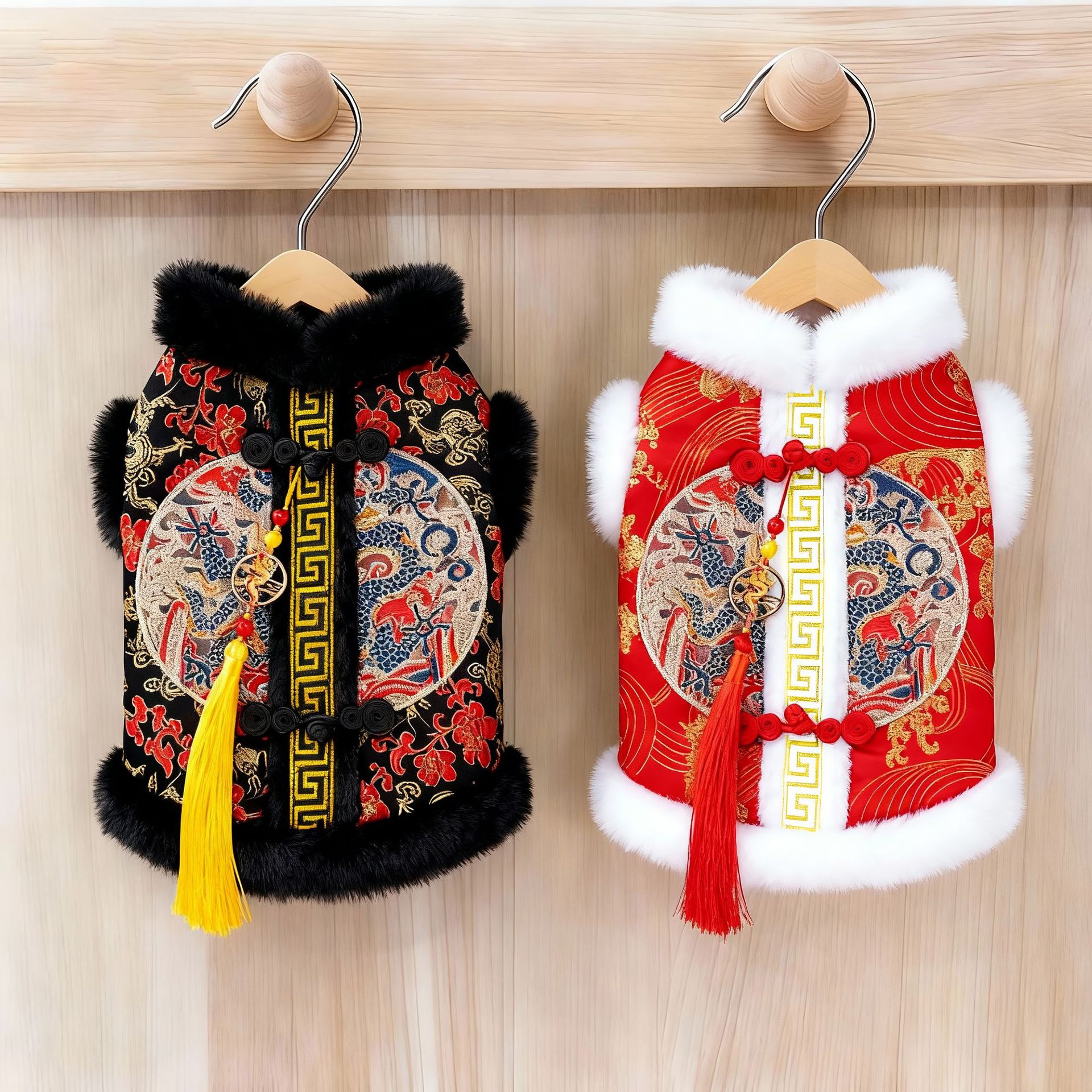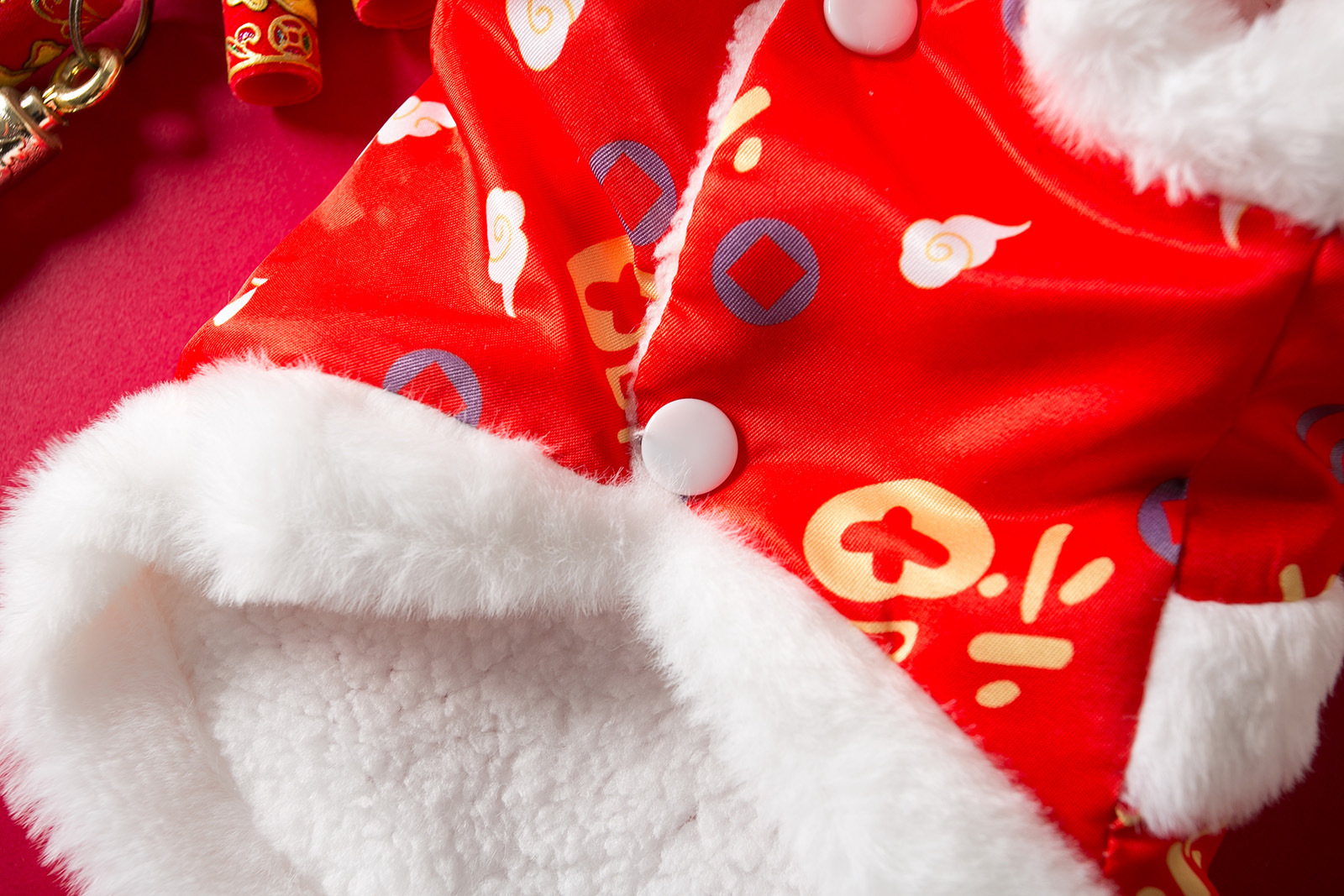 ペットの犬の新年の新しいローブ、厚くベルベットの暖かいお祝いの唐スーツ、中小型犬と猫の服
