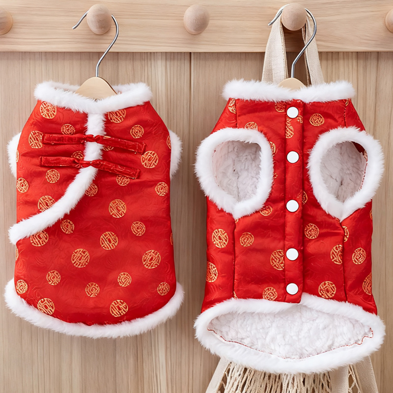 小型犬用服 2025年新年モデル お祝い 秋冬モデル ビションフリーゼ テディ ポメラニアン 小型犬用ペット 厚手ベスト