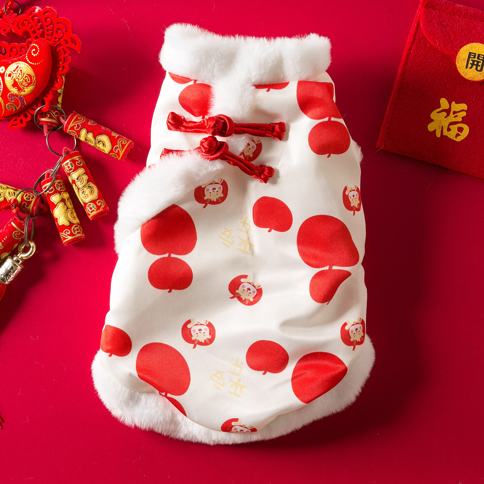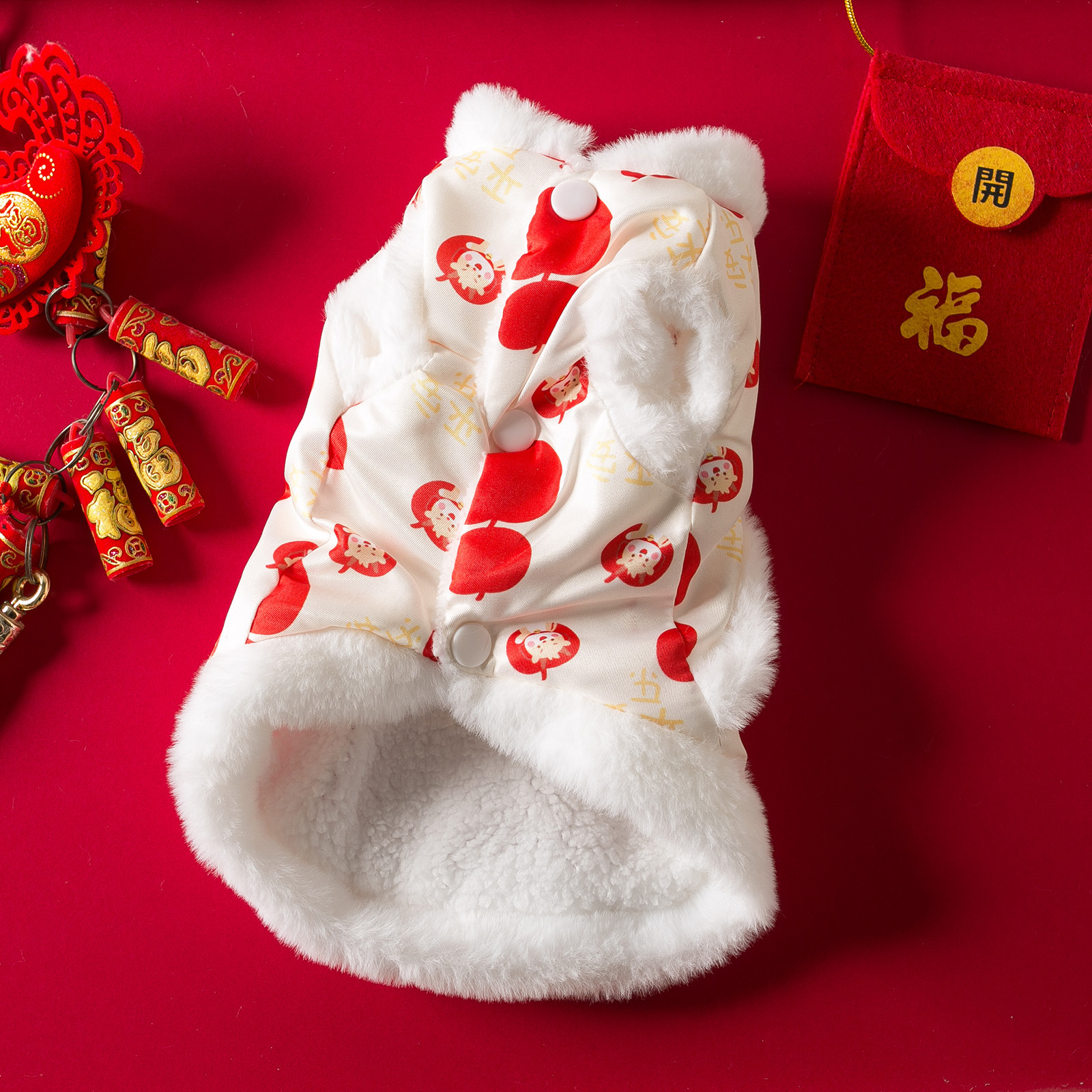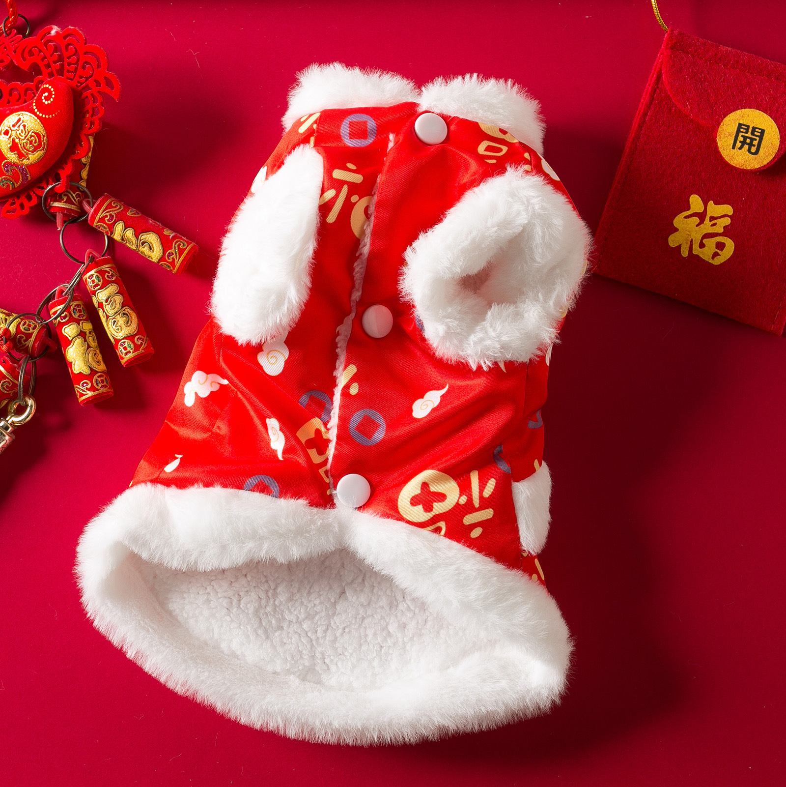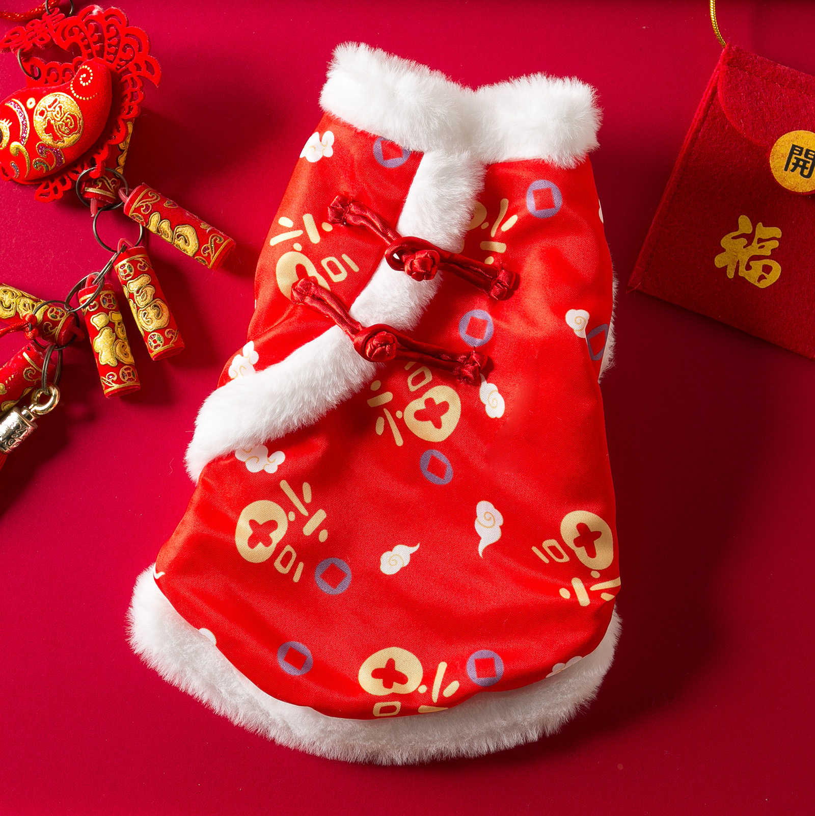 新年唐装子猫ペット用正月服秋冬用裏起毛犬用テディビション用お祝い新年綿服