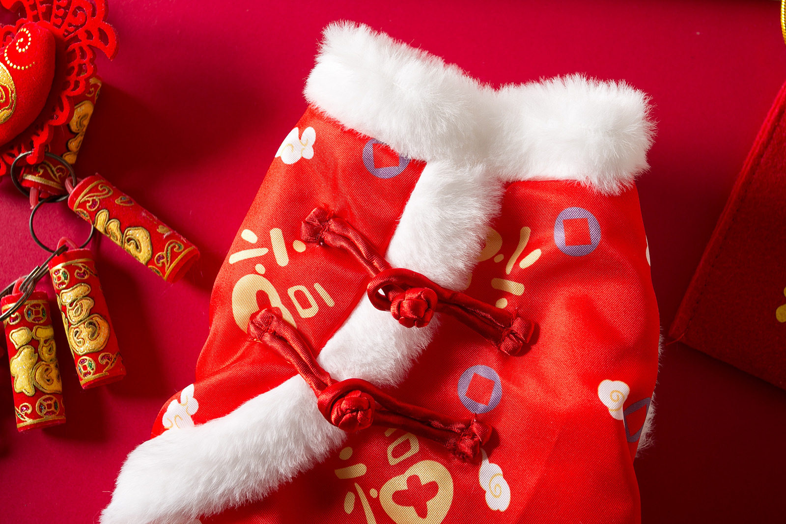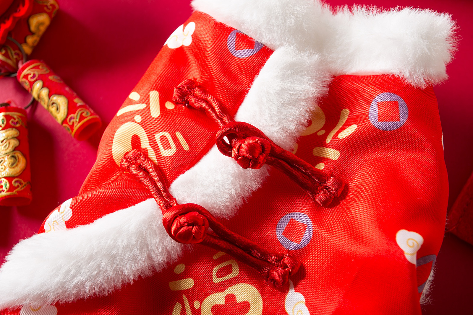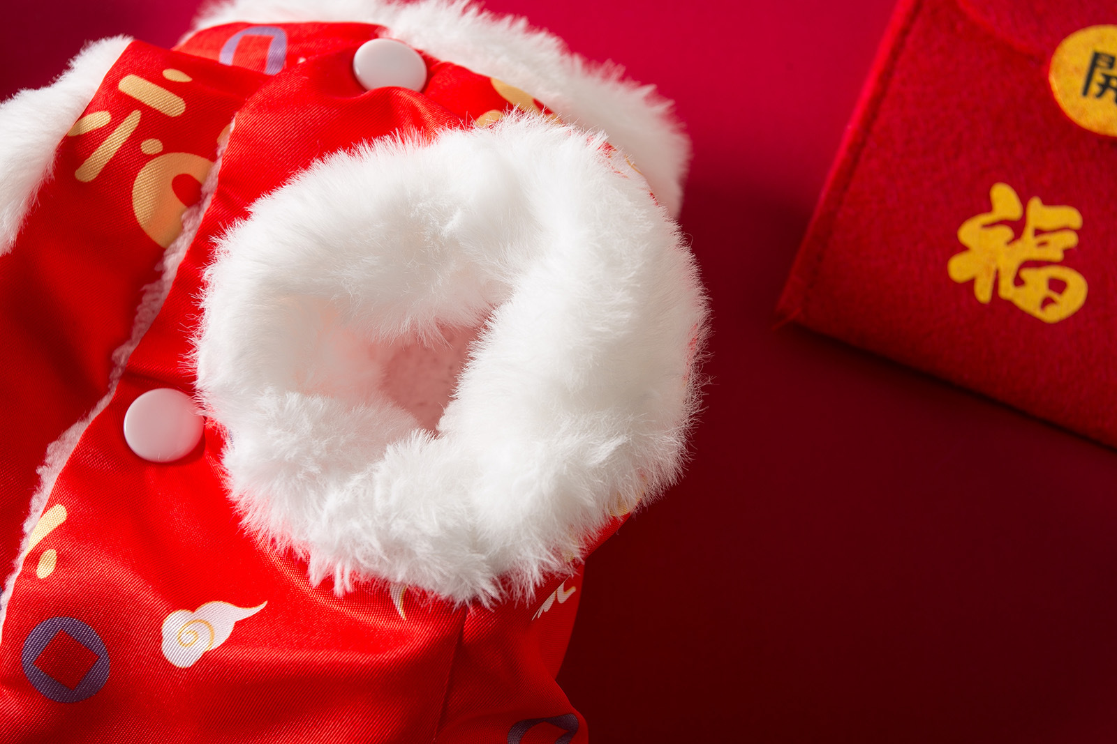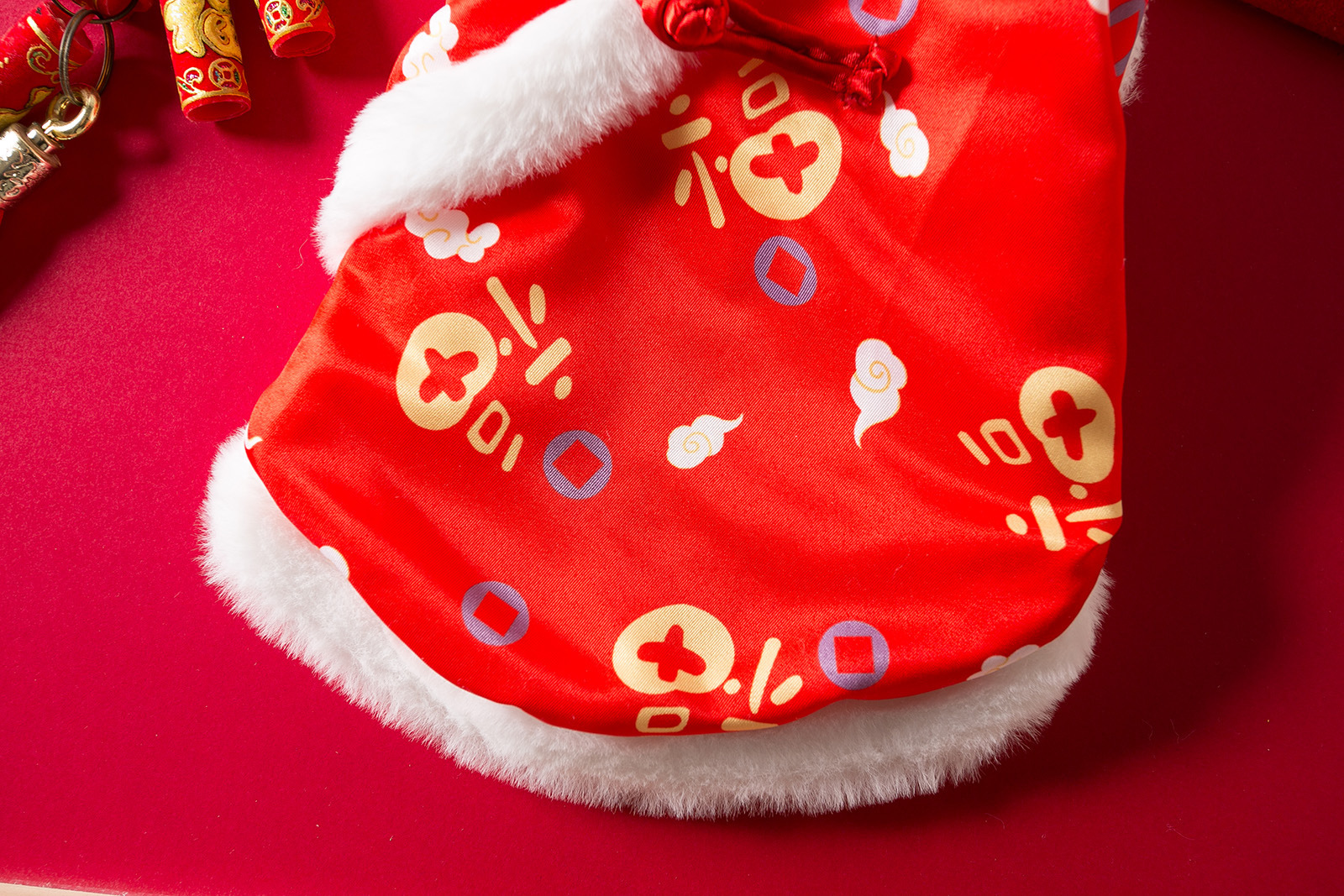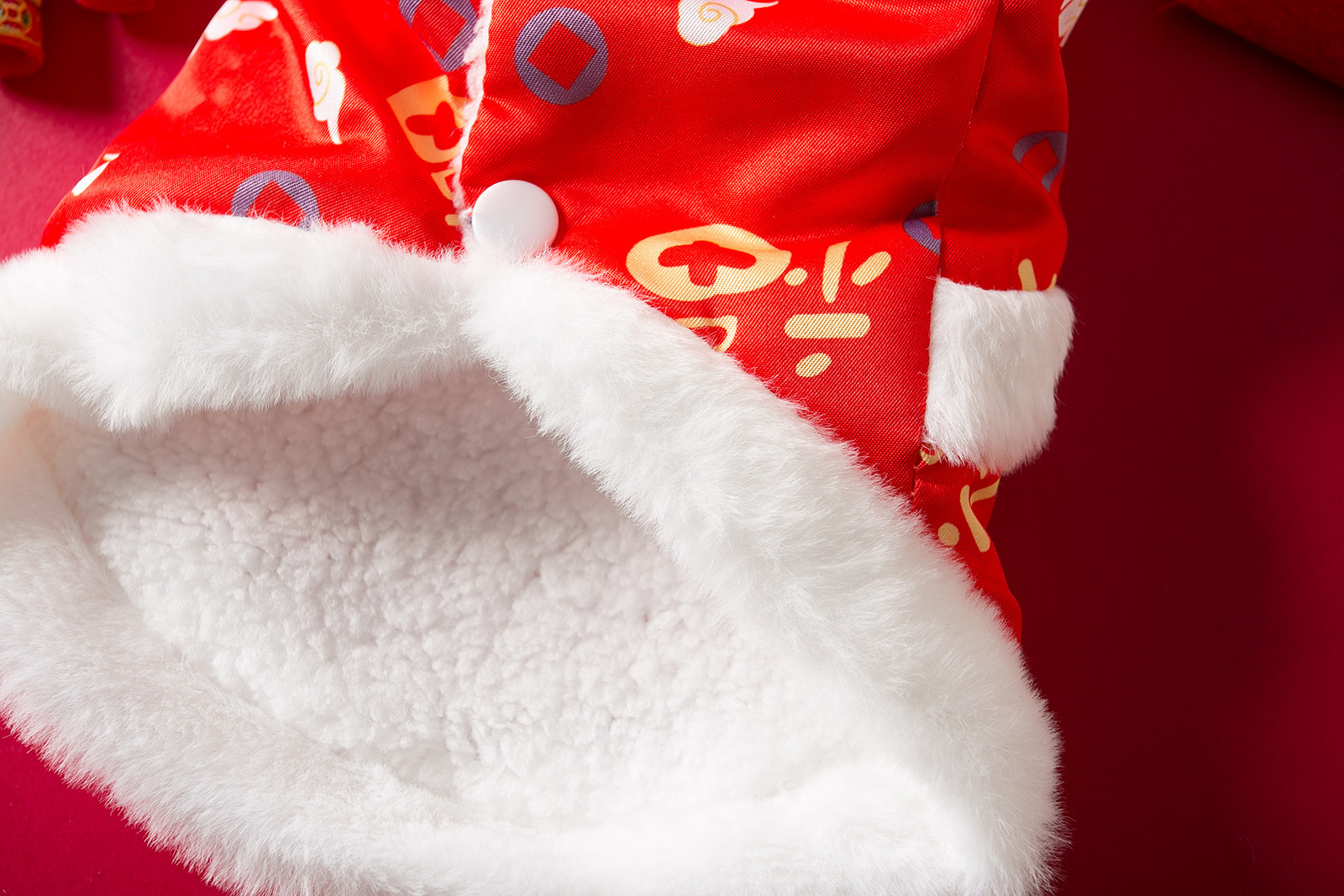 新年唐装子猫ペット用正月服秋冬用裏起毛犬用テディビション用お祝い新年綿服