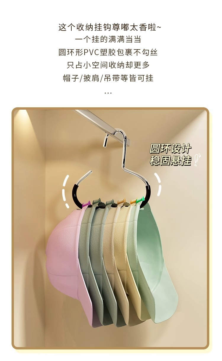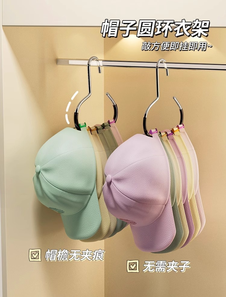 帽子收纳神器创意圆环防滑落帽子挂钩多功能挂帽子展示架圆环衣架