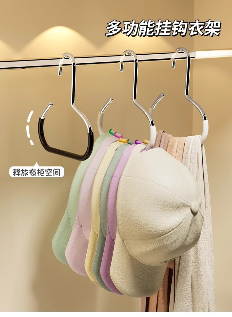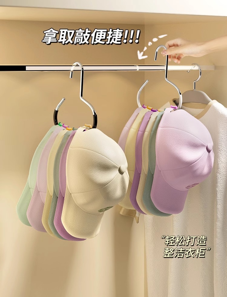 整理师推荐帽子收纳神器家用衣服包挂钩免打孔帽子圆环衣架不变形