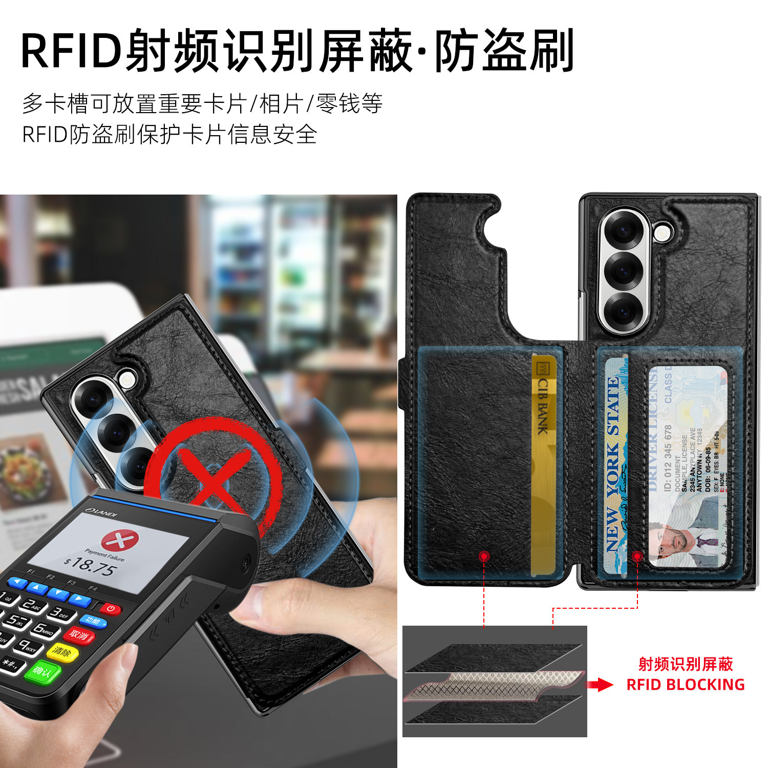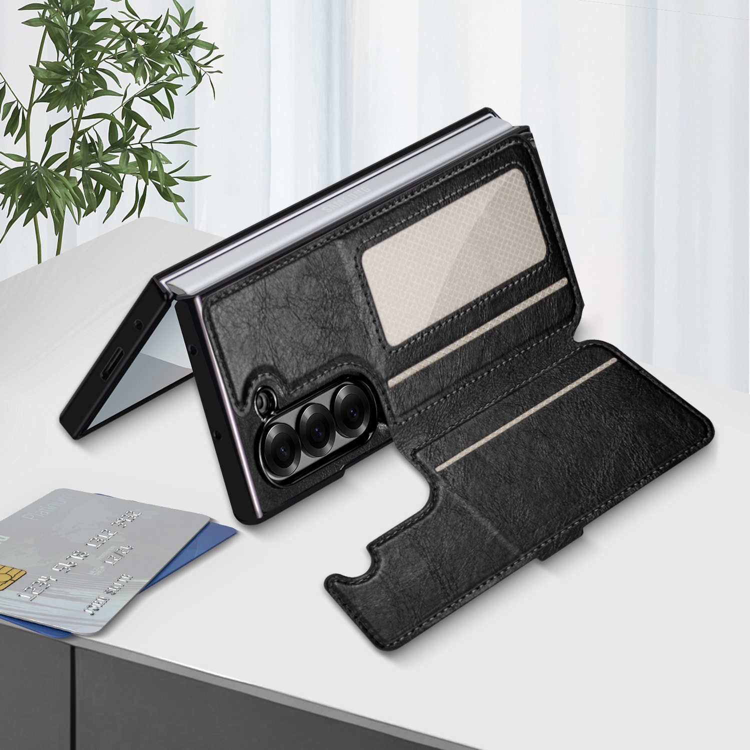 新しいモデルに適した Samsung Fold 40% off スタックスクリーン携帯電話ケース zfold5 磁気分割カードホルダー携帯電話レザーケース