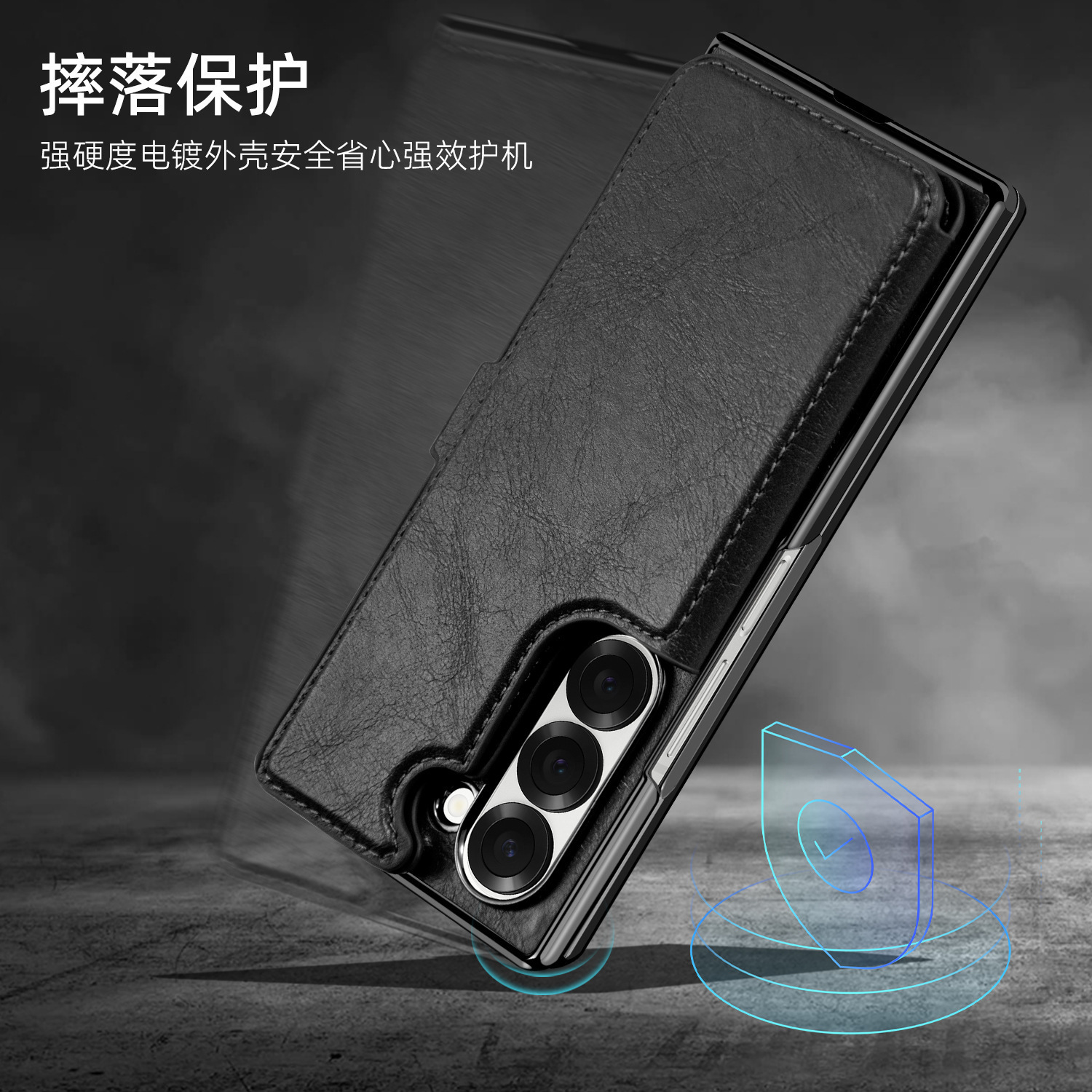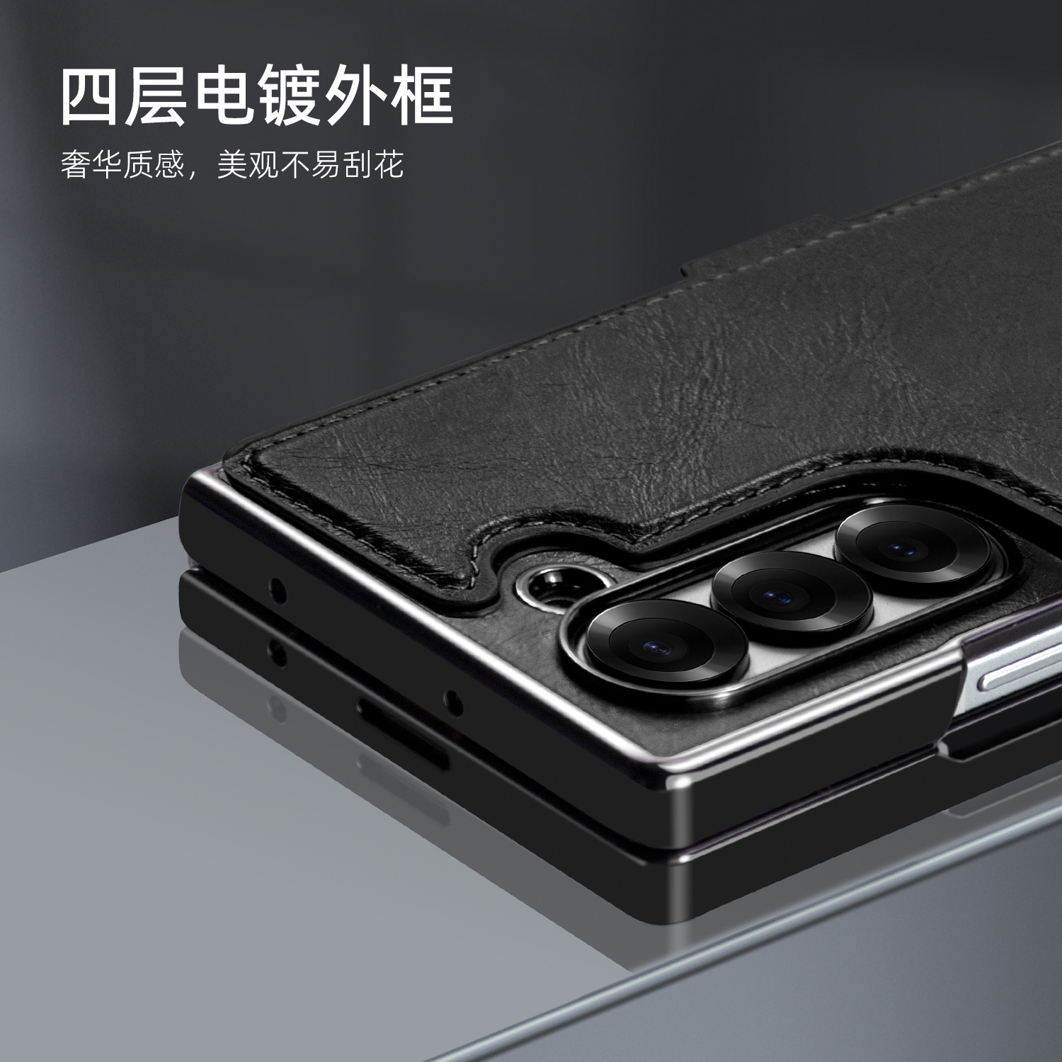 工場卸売サムスンfold7電気メッキスタンド携帯電話ケース、カード挿入、ハンドロープシェルフィルム一体型レザーケースに適しています
