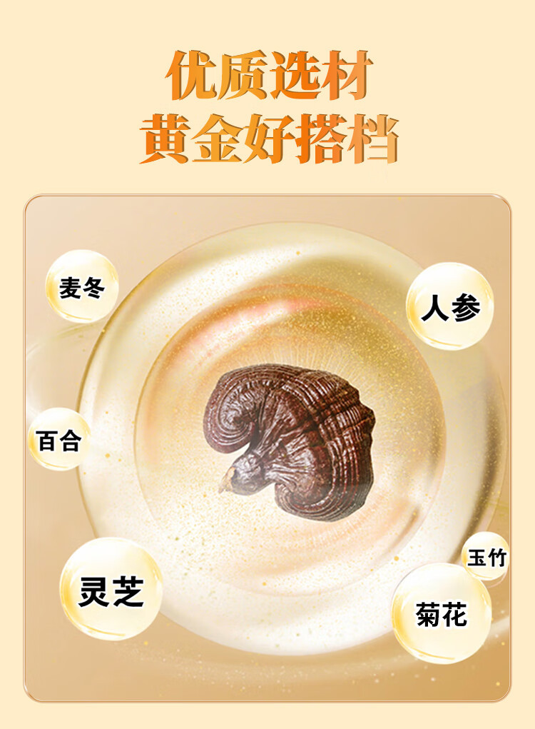 オフィオポゴン・ジャポニカス粉末、マンネンタケ粉末高麗人参(人工栽培5年以内)、ビワ果実粉末、脂肪海粉末、ビタミンB1