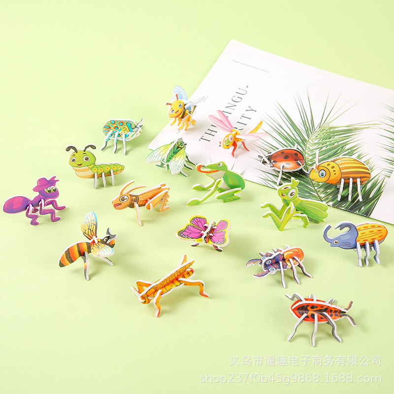 3d立体動物パズル子供趣味昆虫創意diy玩具幼児早教手作りパズルカード