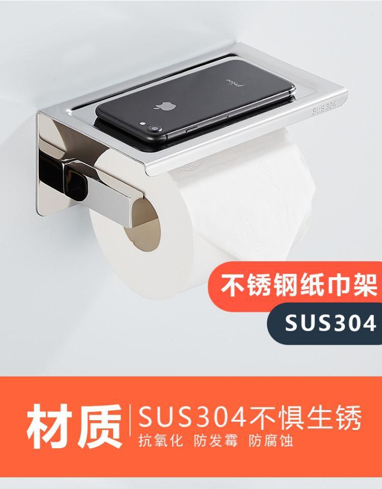 免打孔304不锈钢卷纸架浴室台式置物架厕所酒店卫生间手机纸巾架