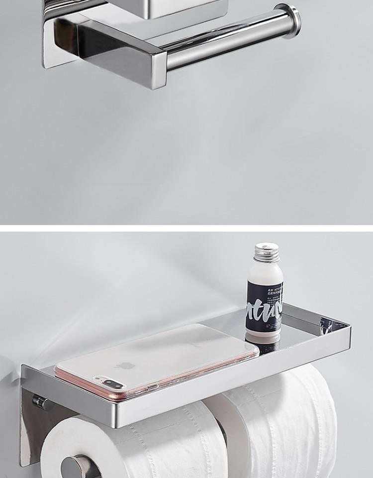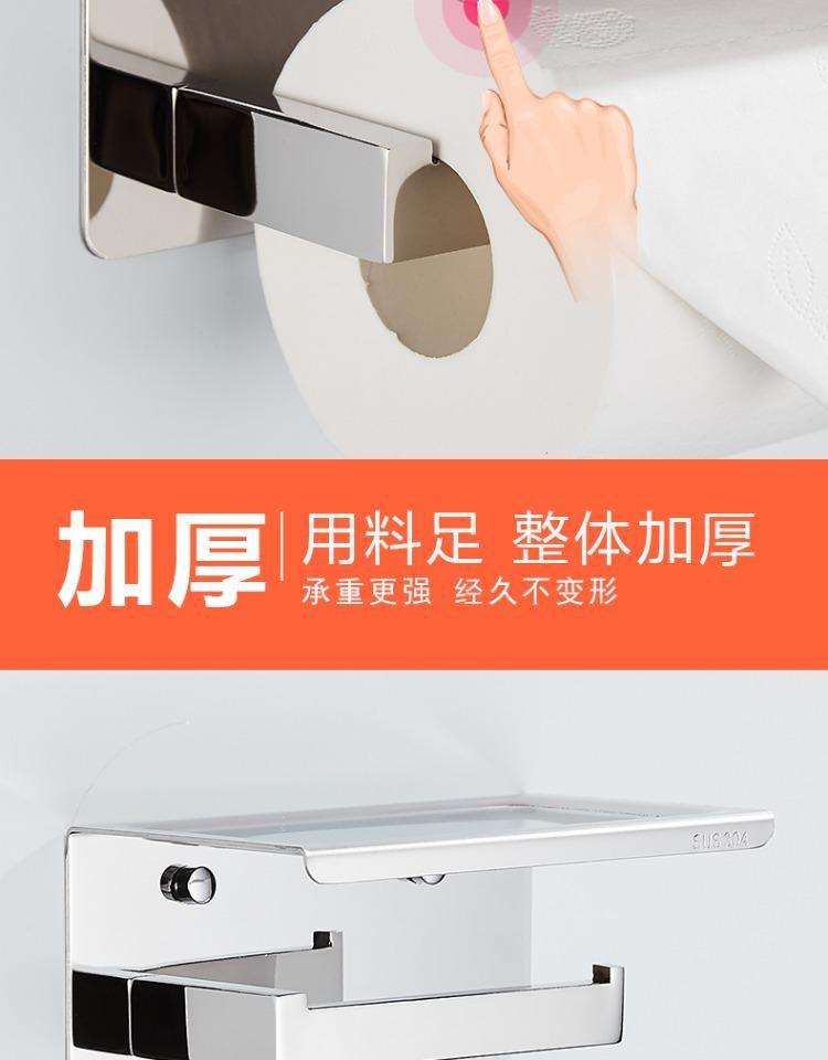 跨境不锈钢纸巾架卫生卷纸架酒店壁挂免打孔收纳卷纸盒手机置物架