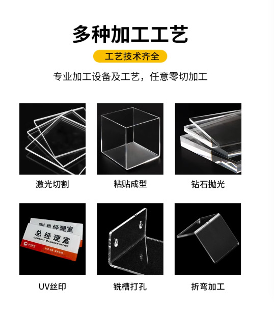 高透明アクリルプレキシガラス板、図面によるカスタマイズ加工、レーザー彫刻、切断、穴あけ、曲げ、印刷