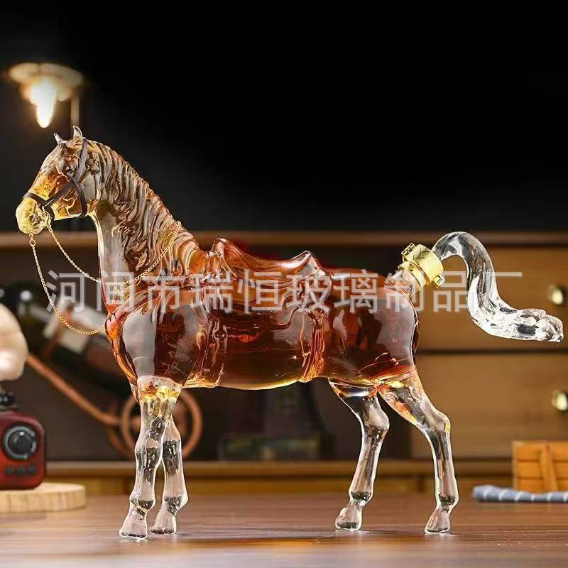 カスタマイズされた新しい馬型の高硼珪酸ガラス製ワインボトル、厚みのある空ボトル、創造的な家庭用十二支ワインボトル