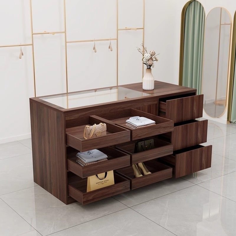 衣料品店中島中島キャビネットレジ収納ディスプレイテーブル流水バーオーナメント婦人服ディスプレイガラスカウンター