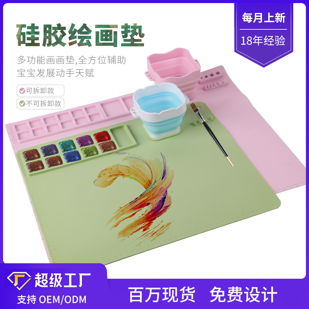 洗濯しやすい文の絵の板はコップのパレットの油絵の落書きの絵のパッドの美術の絵のパッドのシリコンの絵画のパッドのセットを持ちます。