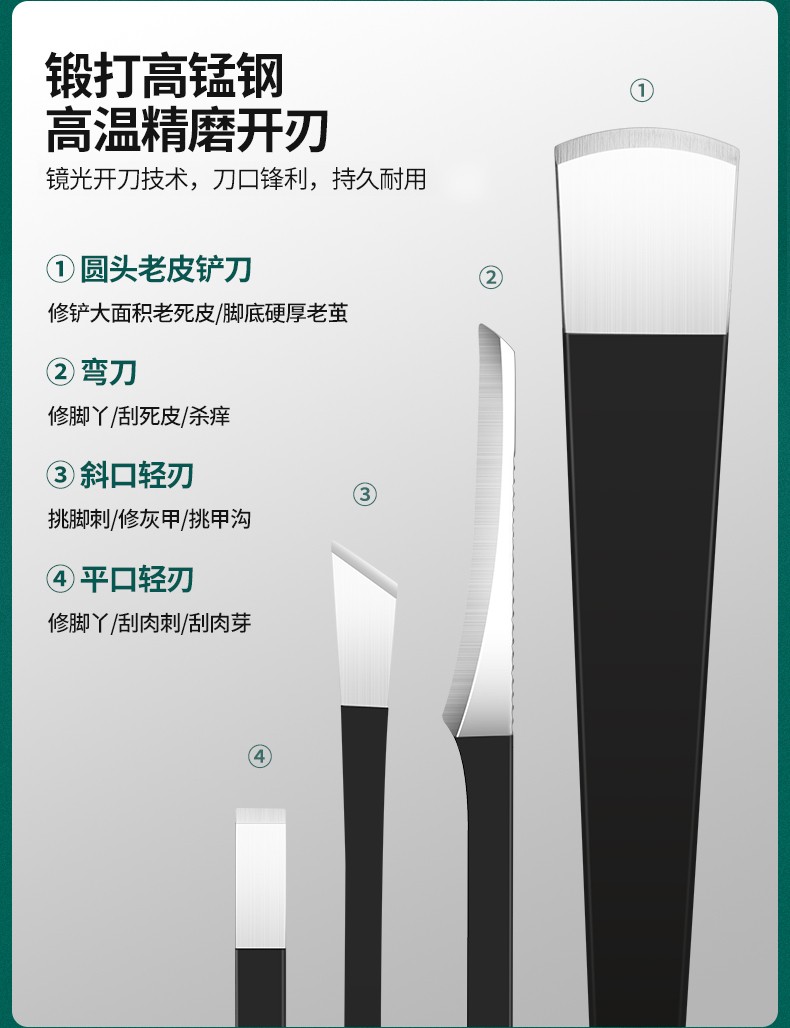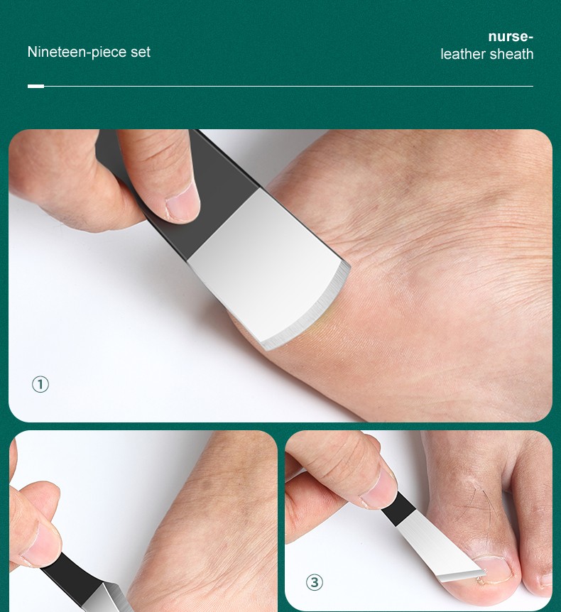 6E3X 爪溝ペディキュアナイフセット ドイツの専門技術者が死んだ皮膚を削り、カルスを除去するためにグレーの爪切りを使用します