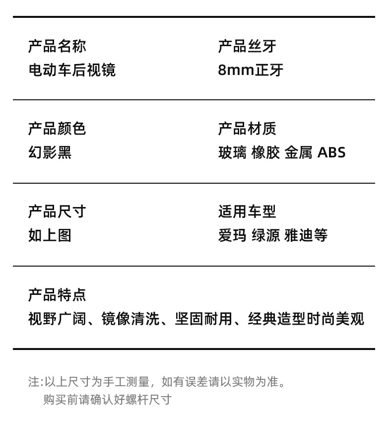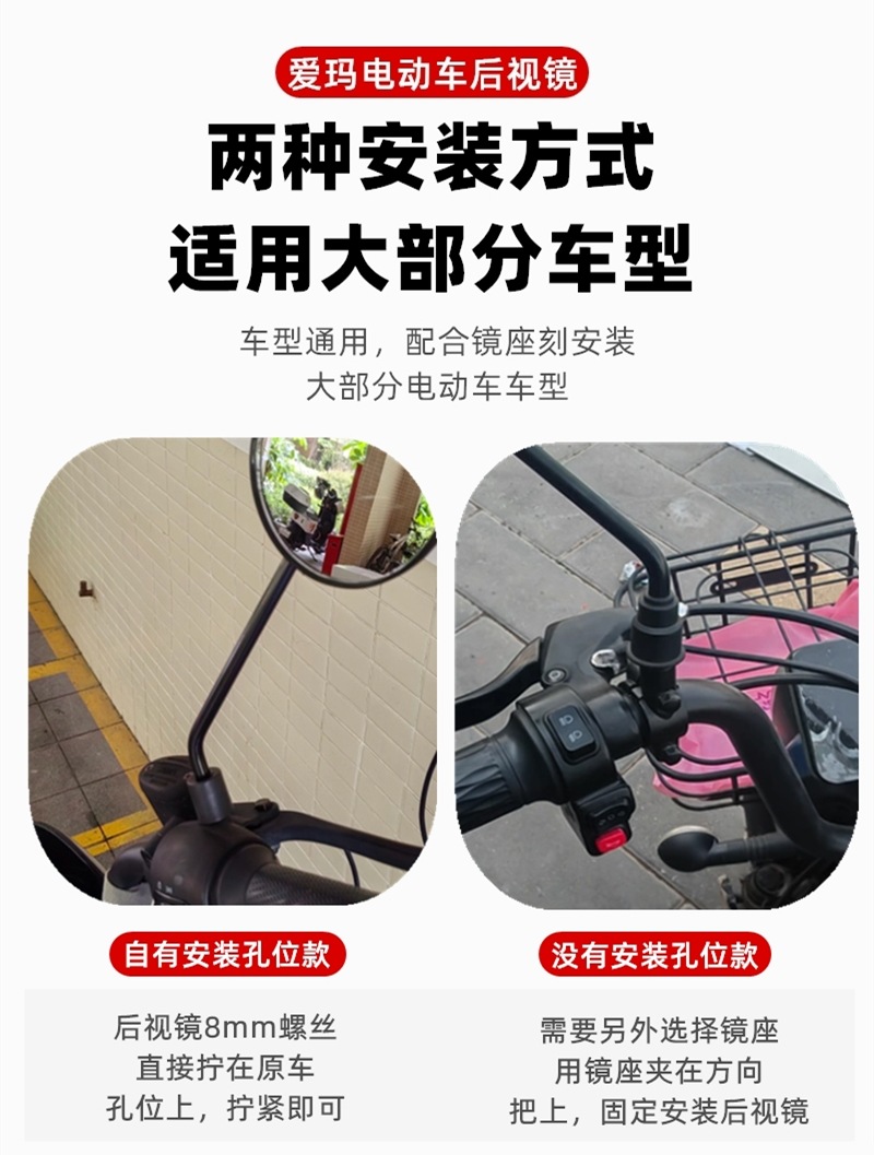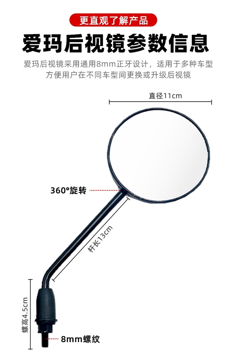 电动车后视镜电动车反光镜电瓶车倒车镜改装配件电动车观后镜通用