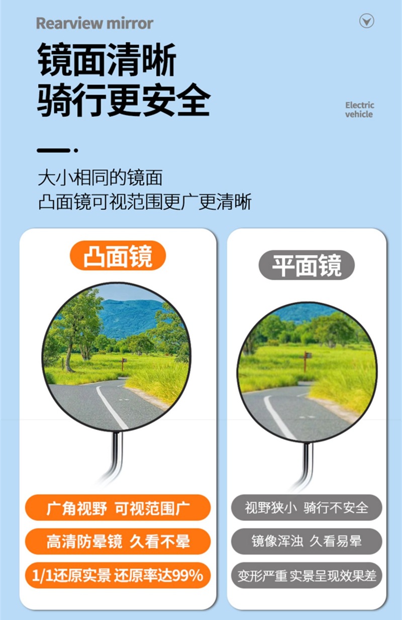 電動自転車バックミラー通用電気自動車バックミラー大視野凸面鏡電気摩ペダル車反射鏡