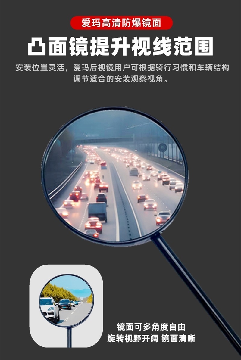 电动车后视镜自行车电瓶车反光镜踏板倒车凸面镜通用