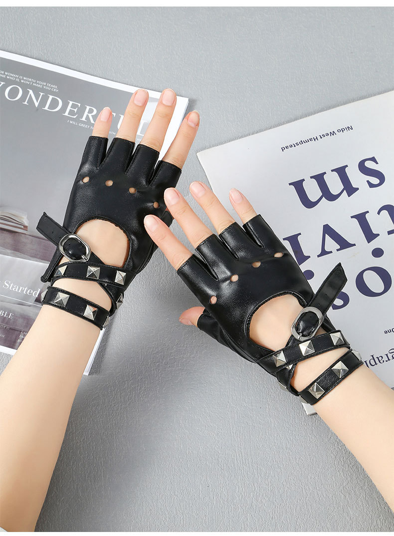 コスプレ演技半指女性リベットPUモデルショーファッションパンク落雷舞台ストリートダンス機関車手袋
