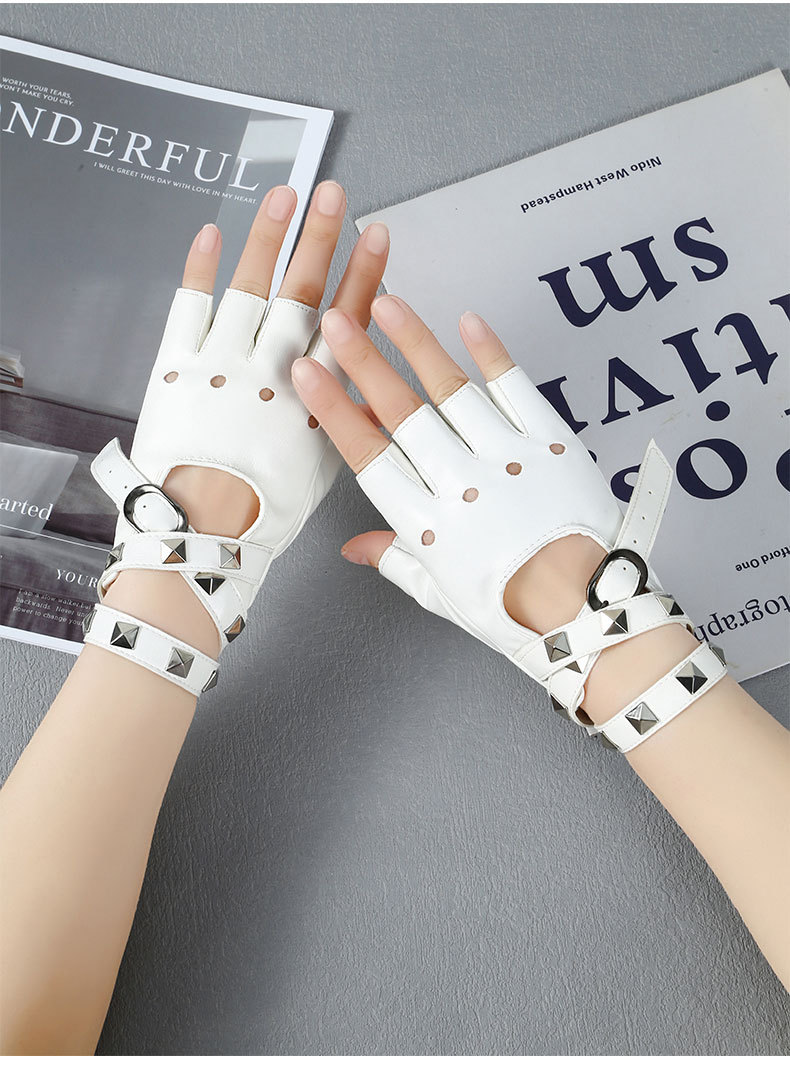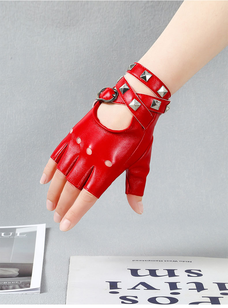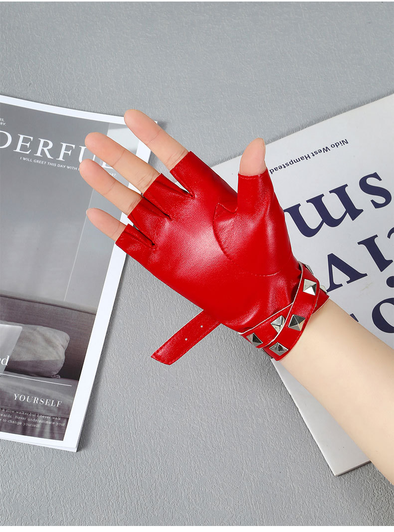 ステージダンスパンク指なし手袋女性パフォーマンスパーソナライズされたレザーリベットハーフフィンガーリップハンドカットアウトゴシック手袋