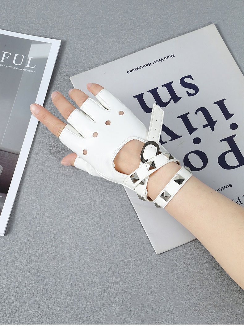 Lolitaサイバーパンクゴシックバンドリベット半分指人工皮手袋ギャル机能露指军クール个性