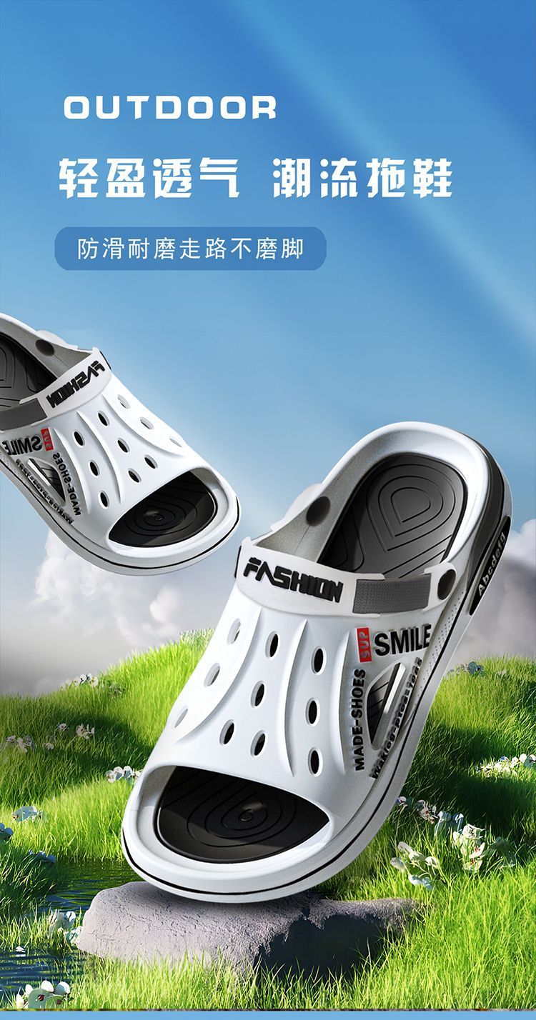踩屎感洞洞鞋男夏季开车钓鱼外穿厚底防滑户外耐磨沙滩包头凉鞋男