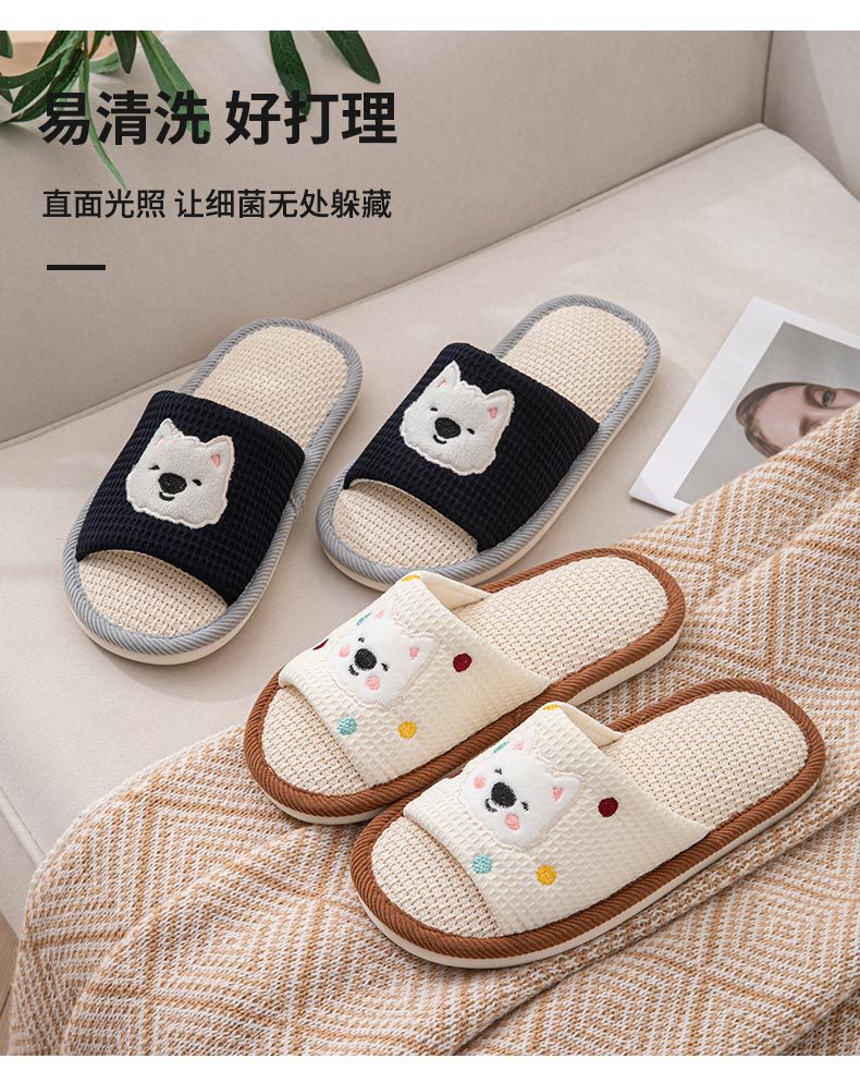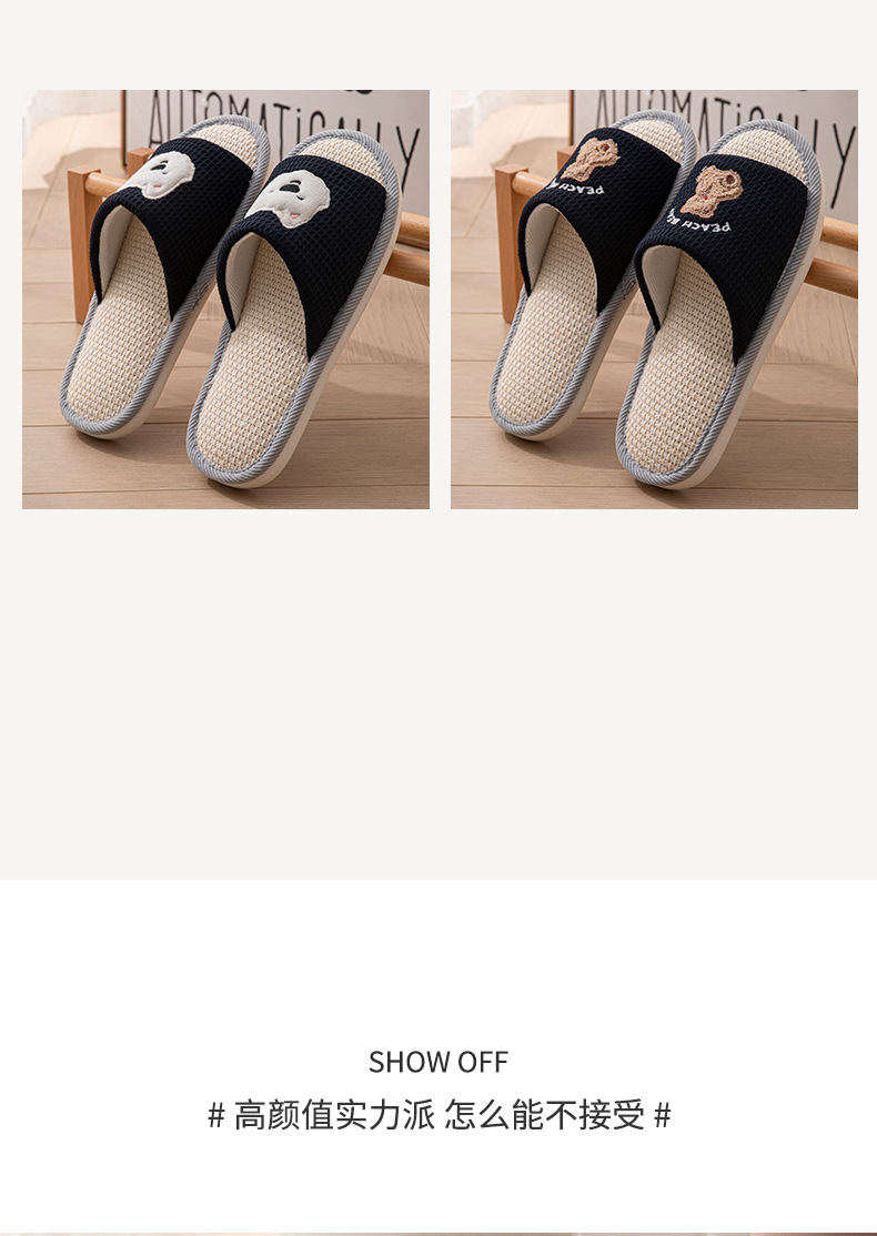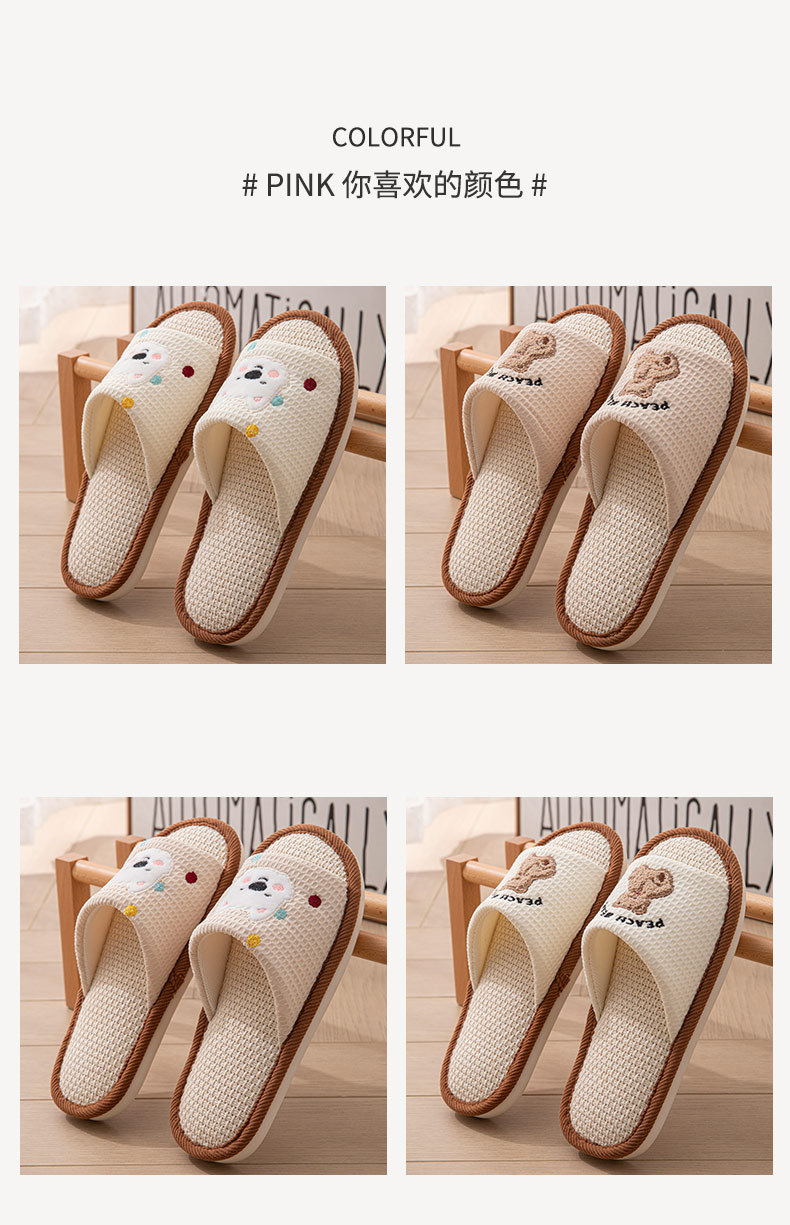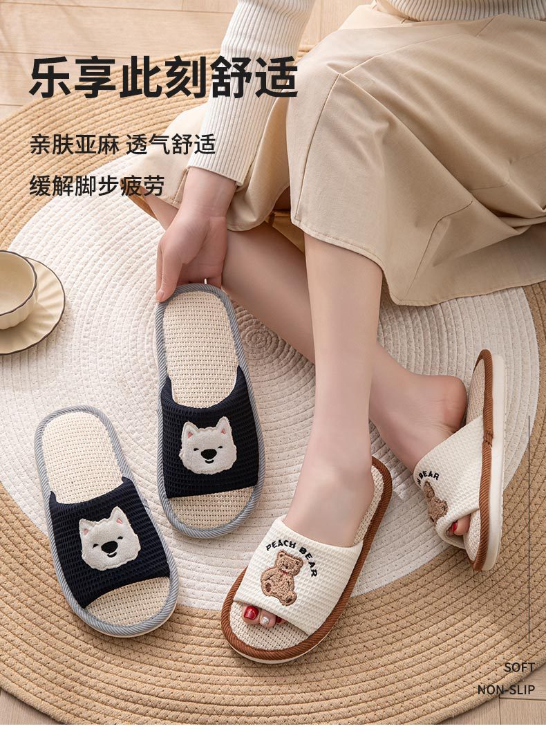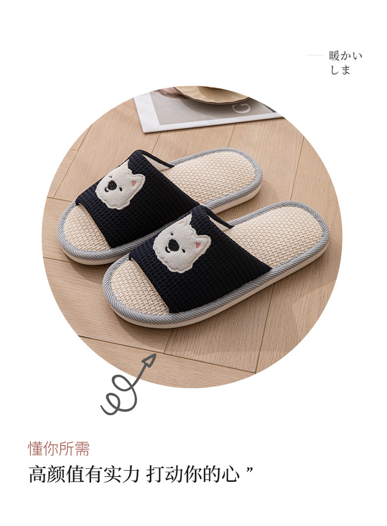 糞感漫画亜麻スリッパ女子春秋滑り止め家庭通気室内静音学生四季スリッパ男性