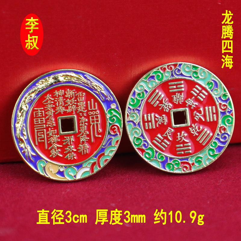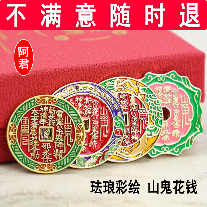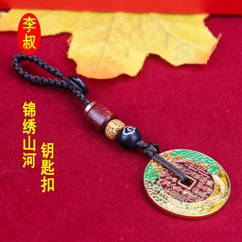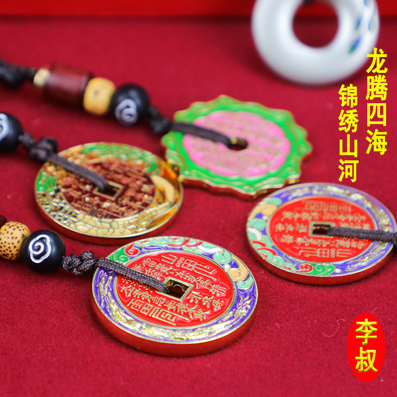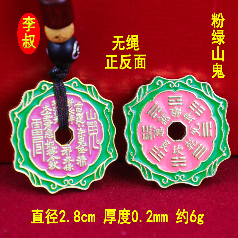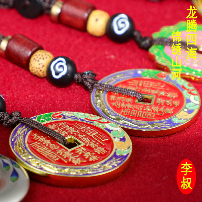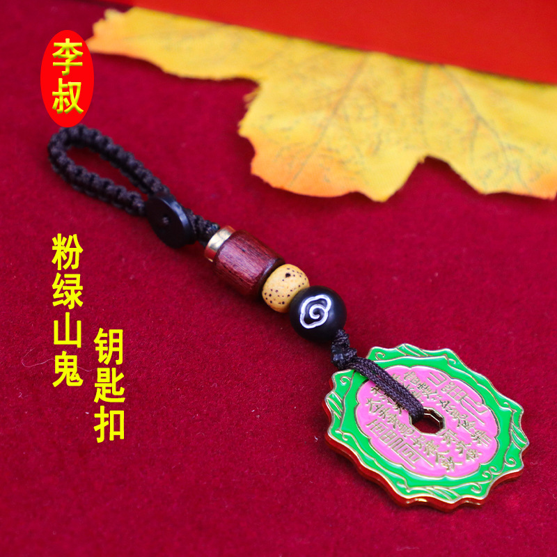 李叔合金山鬼花钱琺瑯彩沙金焼青携帯電話チェーンキーホルダーアクセサリー八卦銅貨