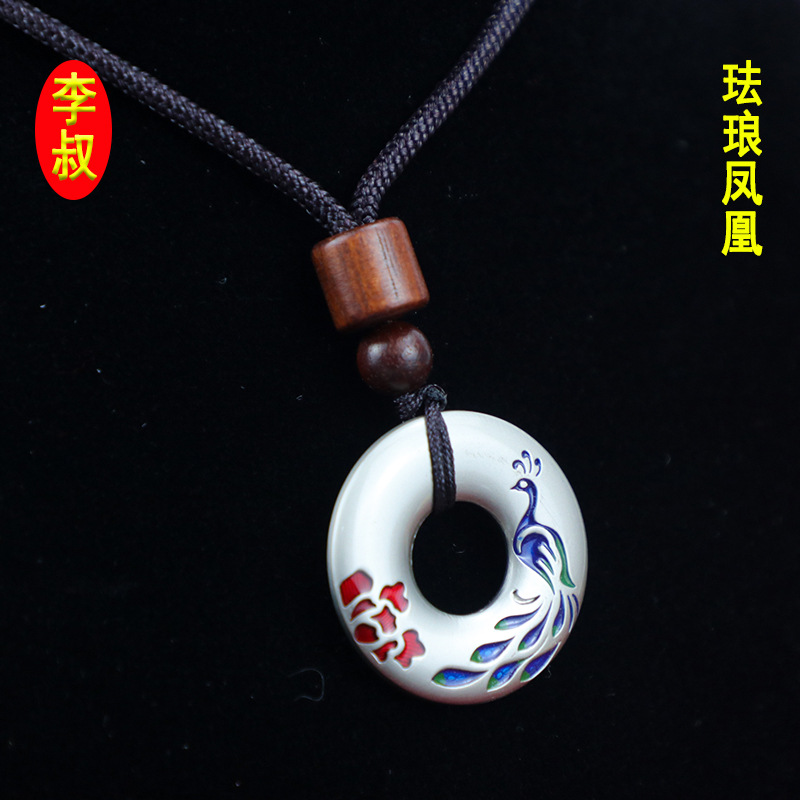 順心平安琺瑯山鬼花钱ペンダント男女兼用焼藍古法鳳凰DIYアクセサリー銅貨ペンダント卸売