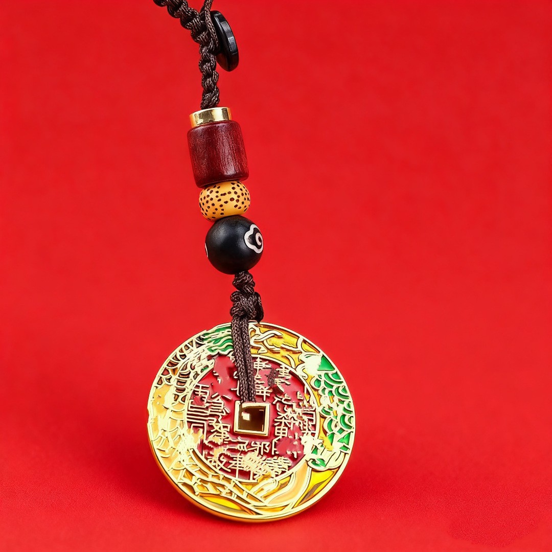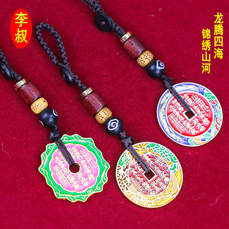 李叔の卸売方孔山鬼花钱古銭朱砂ペンダント八卦平安扣古風コイン車飾り