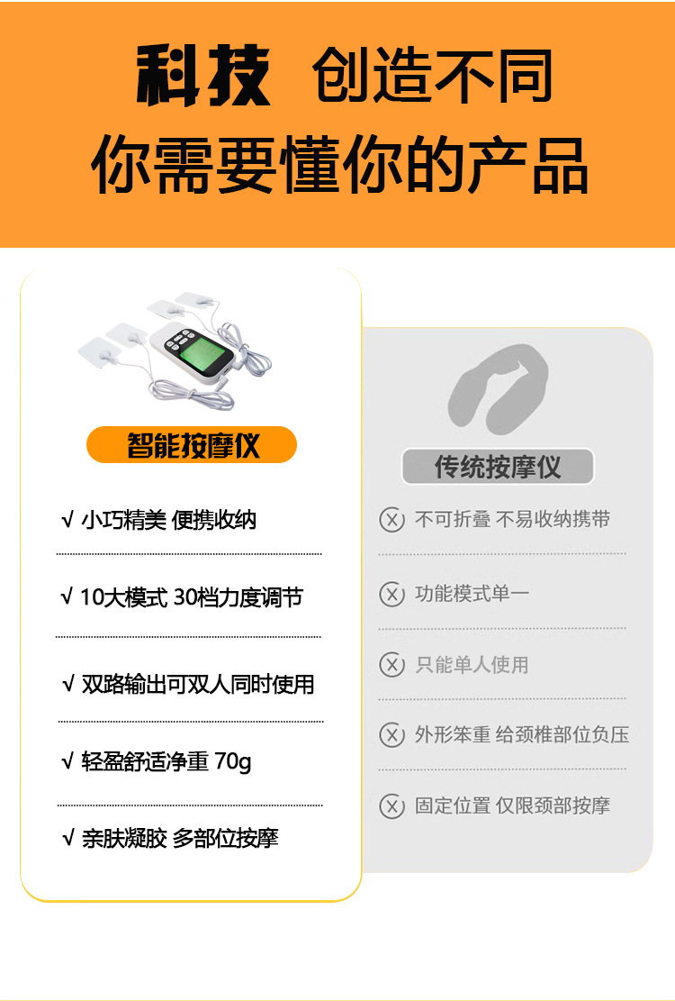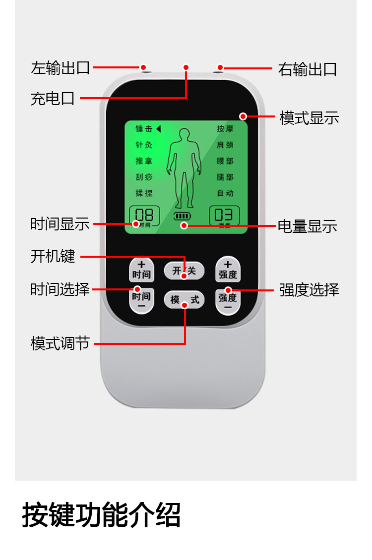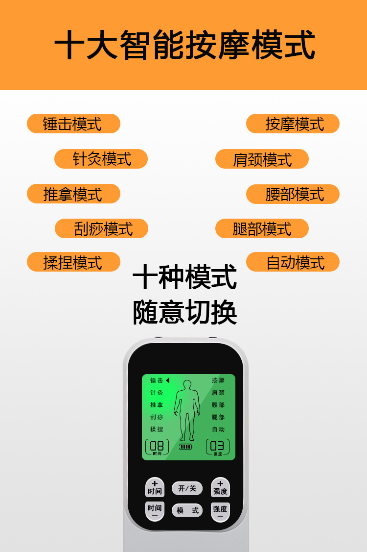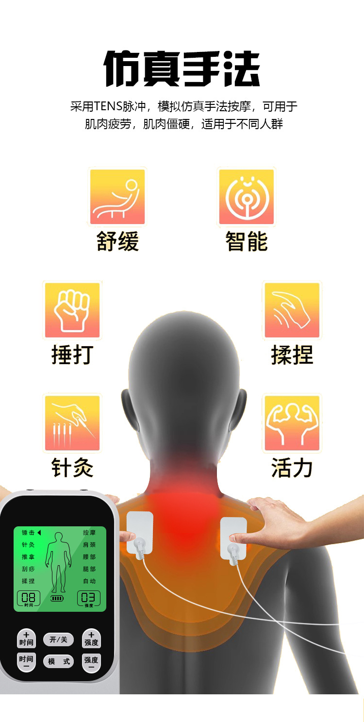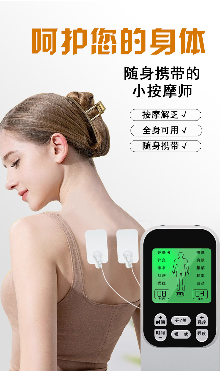 新款数码经络疏通理疗仪家用ems脉冲按摩器颈椎腰部多功能按摩仪
