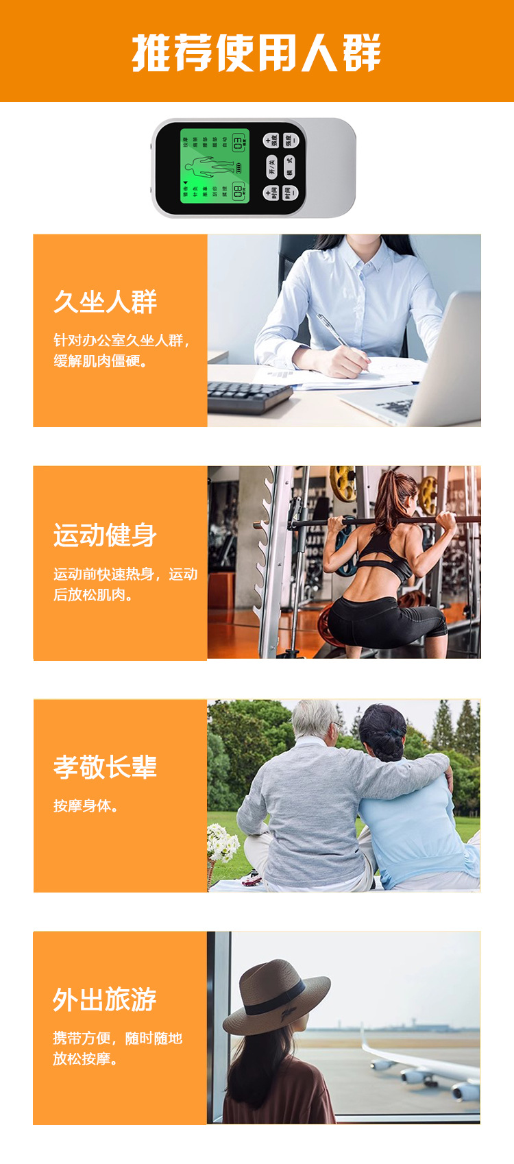 多功能充电式经络按摩仪腰肩腿腹部放松肌肉针理疗仪家用脉冲理疗
