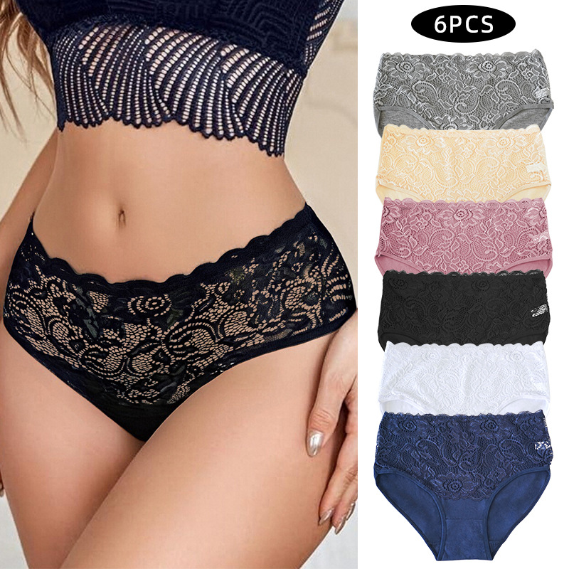 2025 クロスボーダーヨーロッパサイズレースステッチ女性の下着通気性ソリッドカラーガール女性のブリーフヘッドパンティー