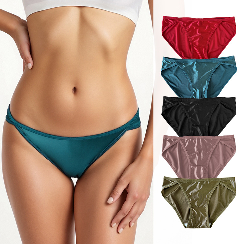 2025 クロスボーダー女性の下着純綿クロッチ光沢のある布通気性ミッドウエストヨーロッパサイズセクシーで快適な肌に優しいパンティー