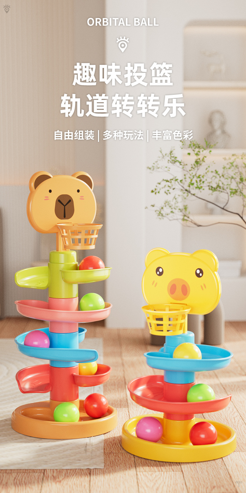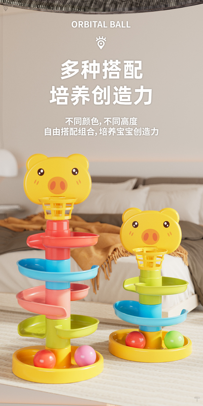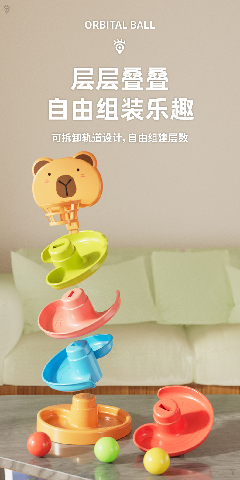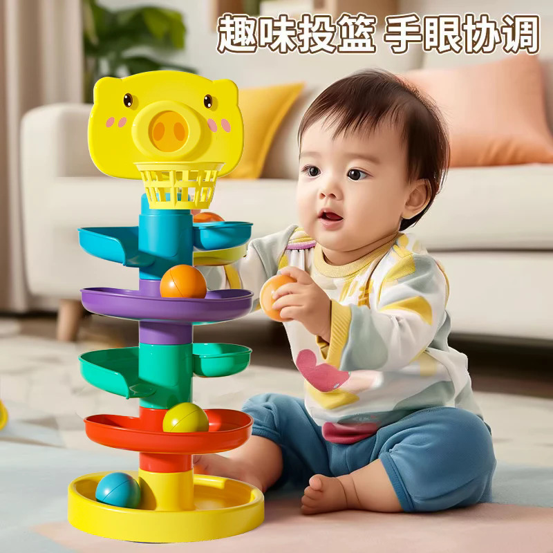 宝宝益智趣味轨道滑球婴儿滚滚球早教叠叠转转乐亲子互动玩具塔