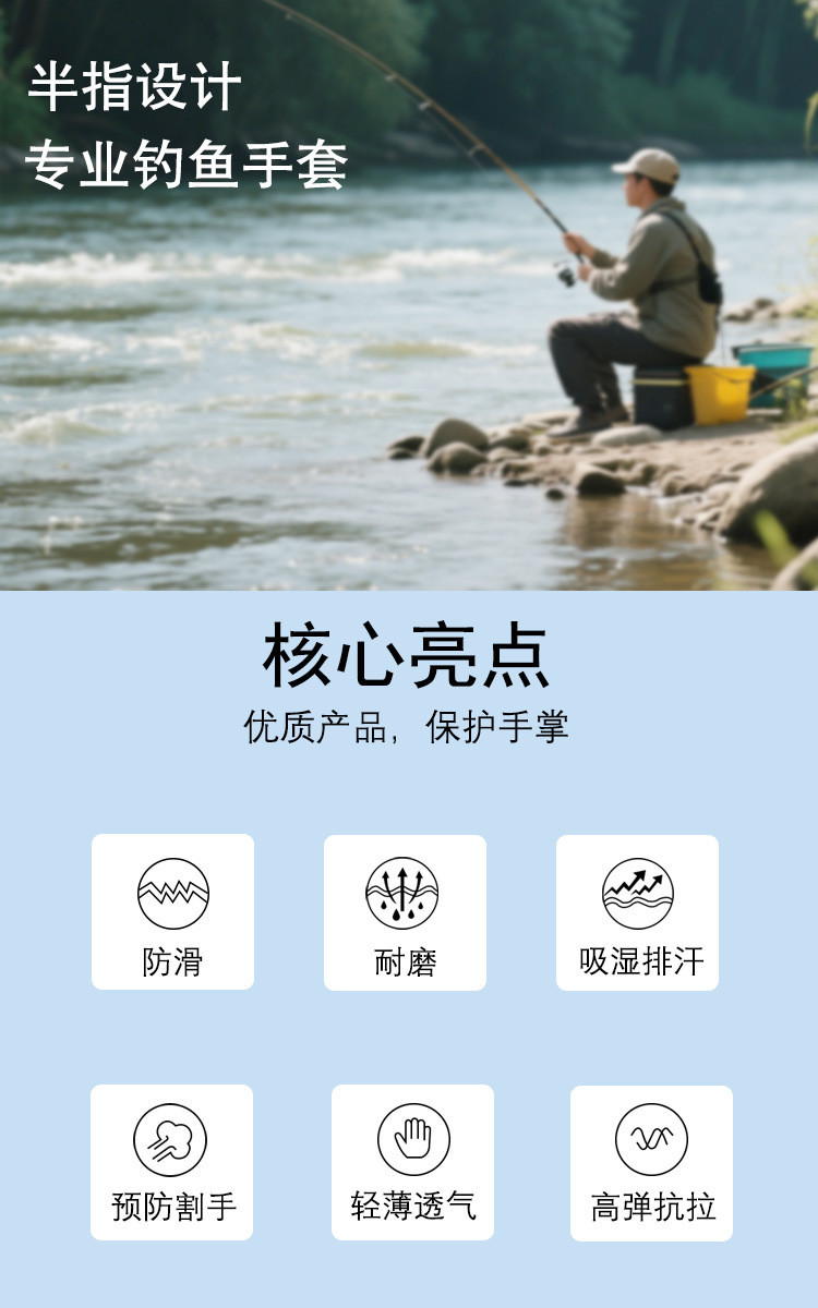新しいアウトドア専用釣りハンドルルアー釣りハーフフィンガー夏軽量日焼け止め滑り止め通気性肌に優しい装備