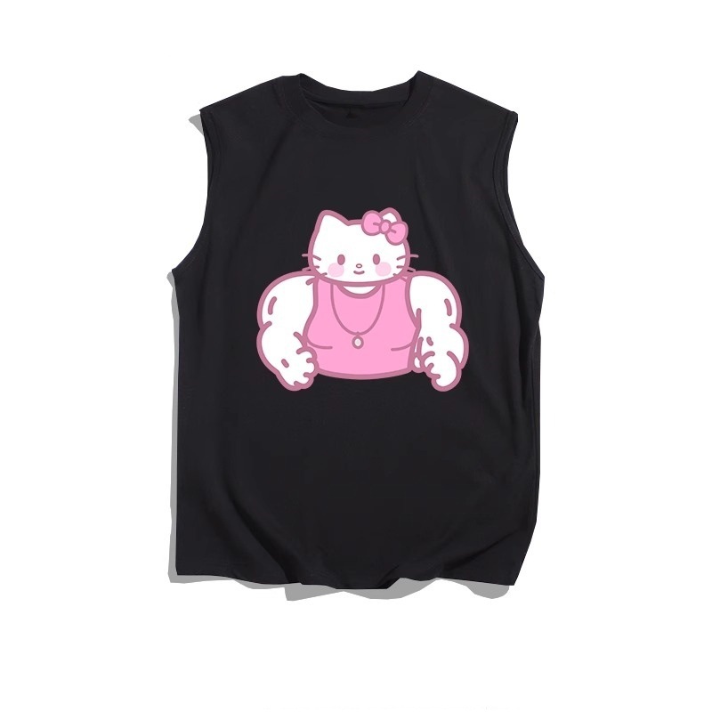 ピンクキティ猫筋肉バージョンクリエイティブ白ベストメンズトレンディな夏薄いカラーチョッキノースリーブ