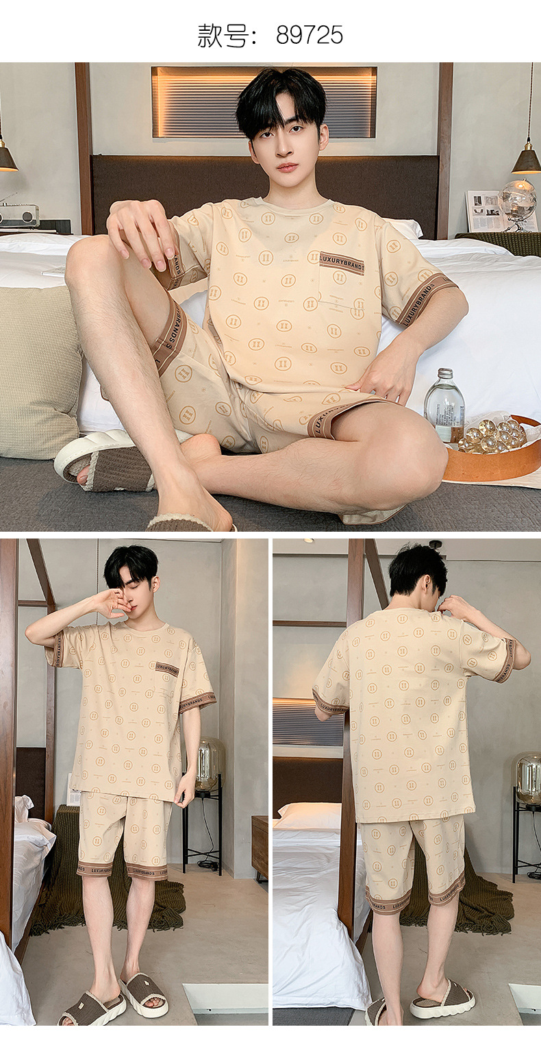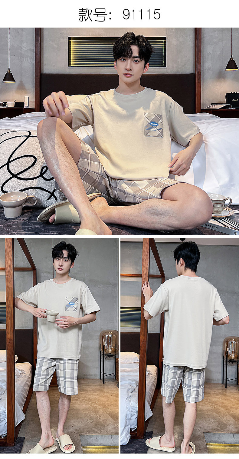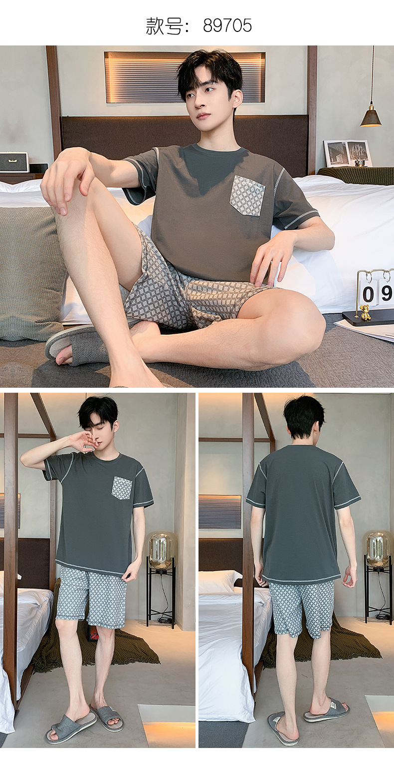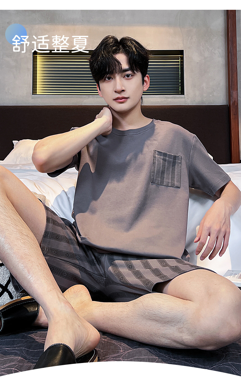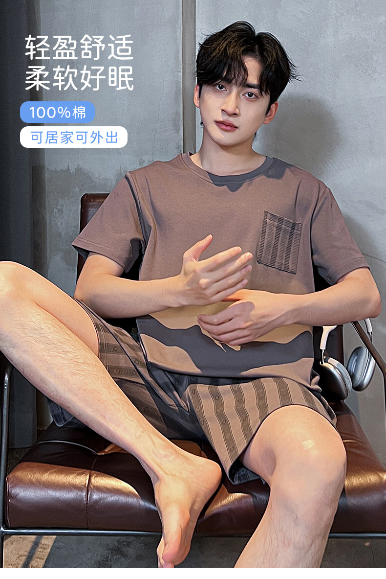 男性用パジャマ、夏の純綿半袖ショーツ、カジュアルホームウェア、大きいサイズのラウンドネック、屋外で着用可能、ゆったりとした若者の綿スーツ