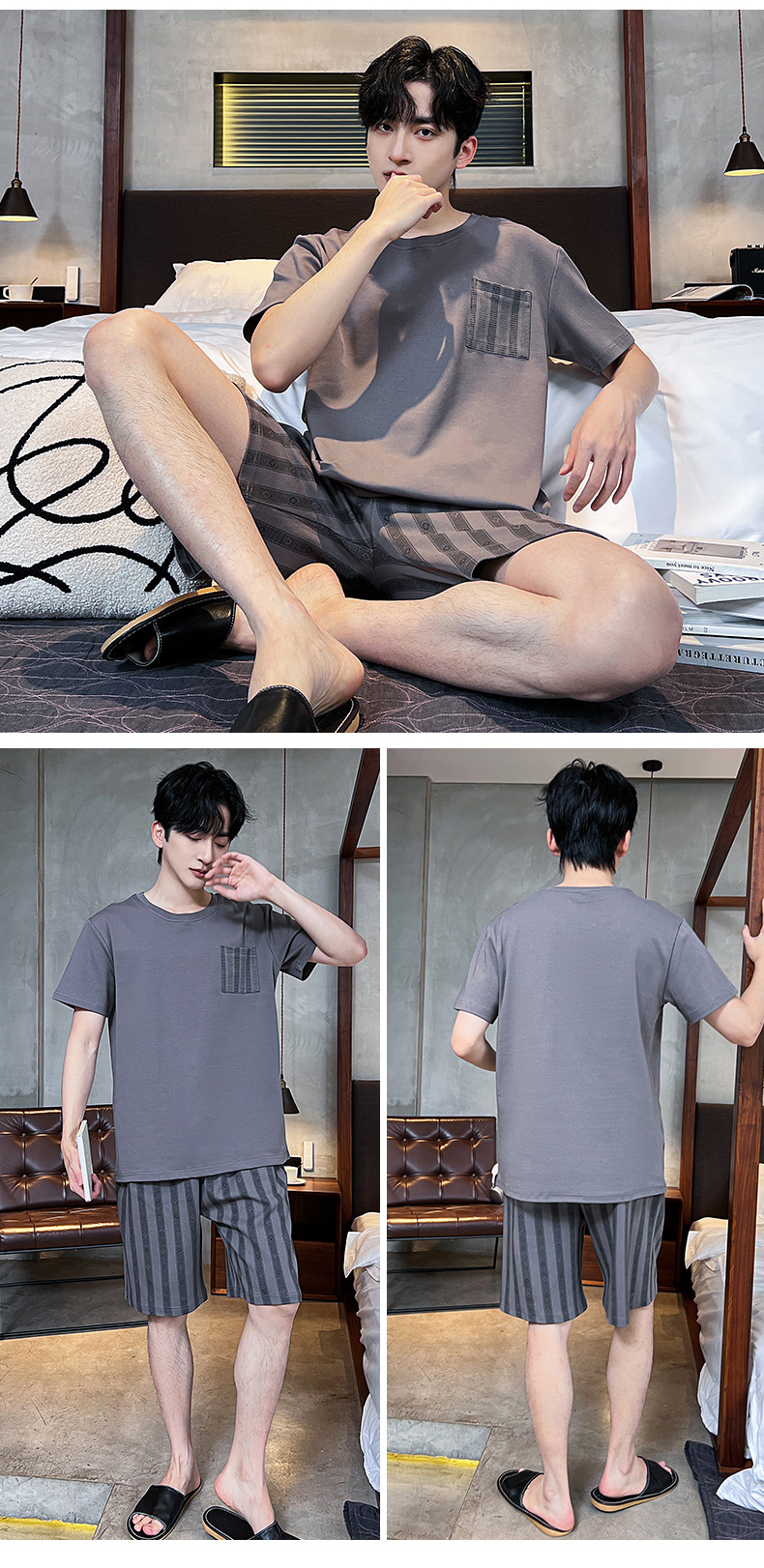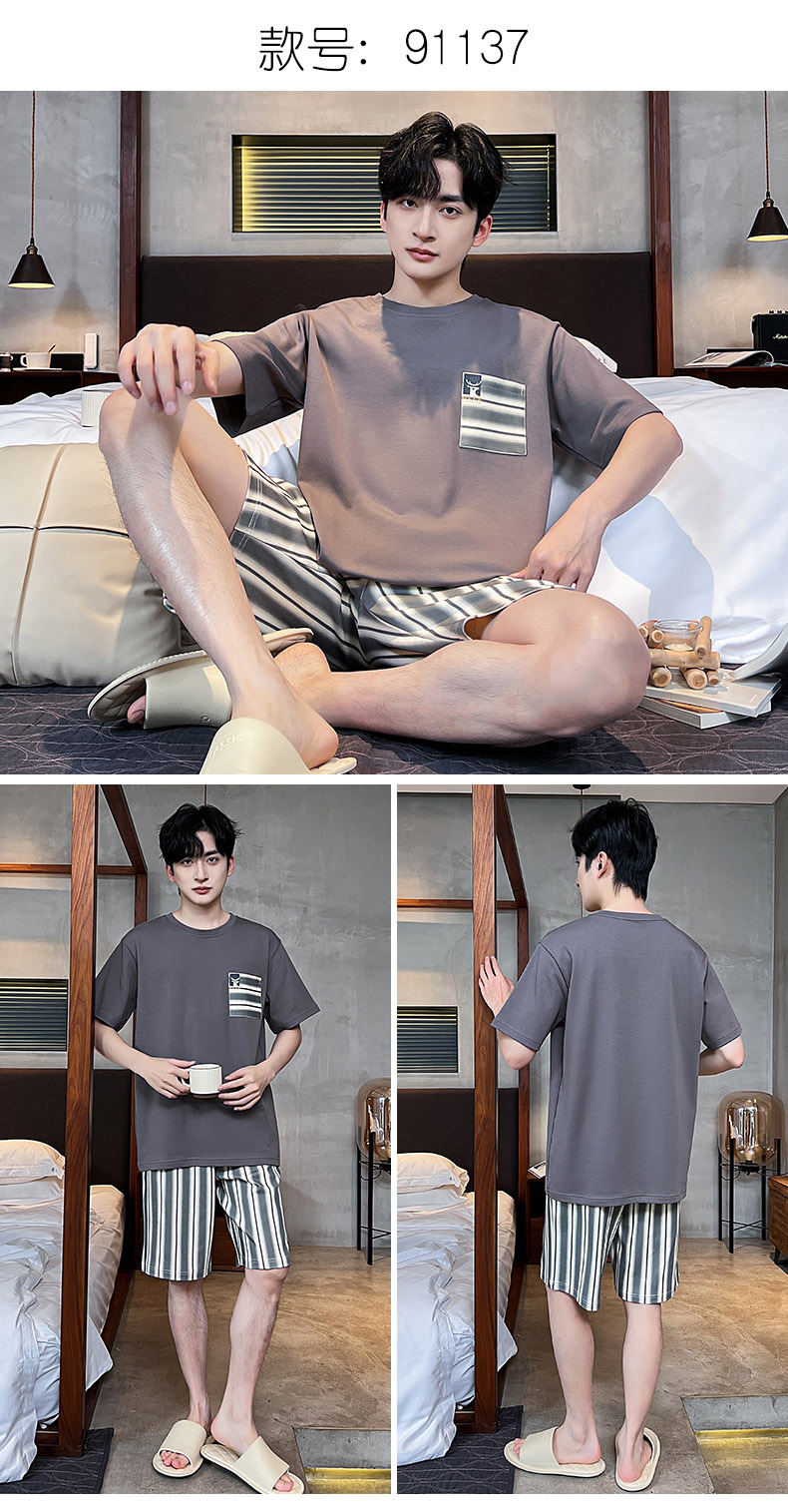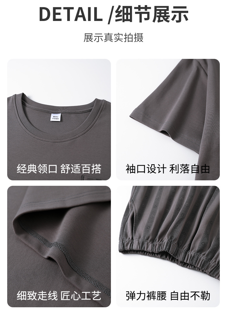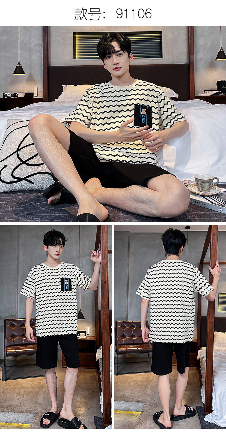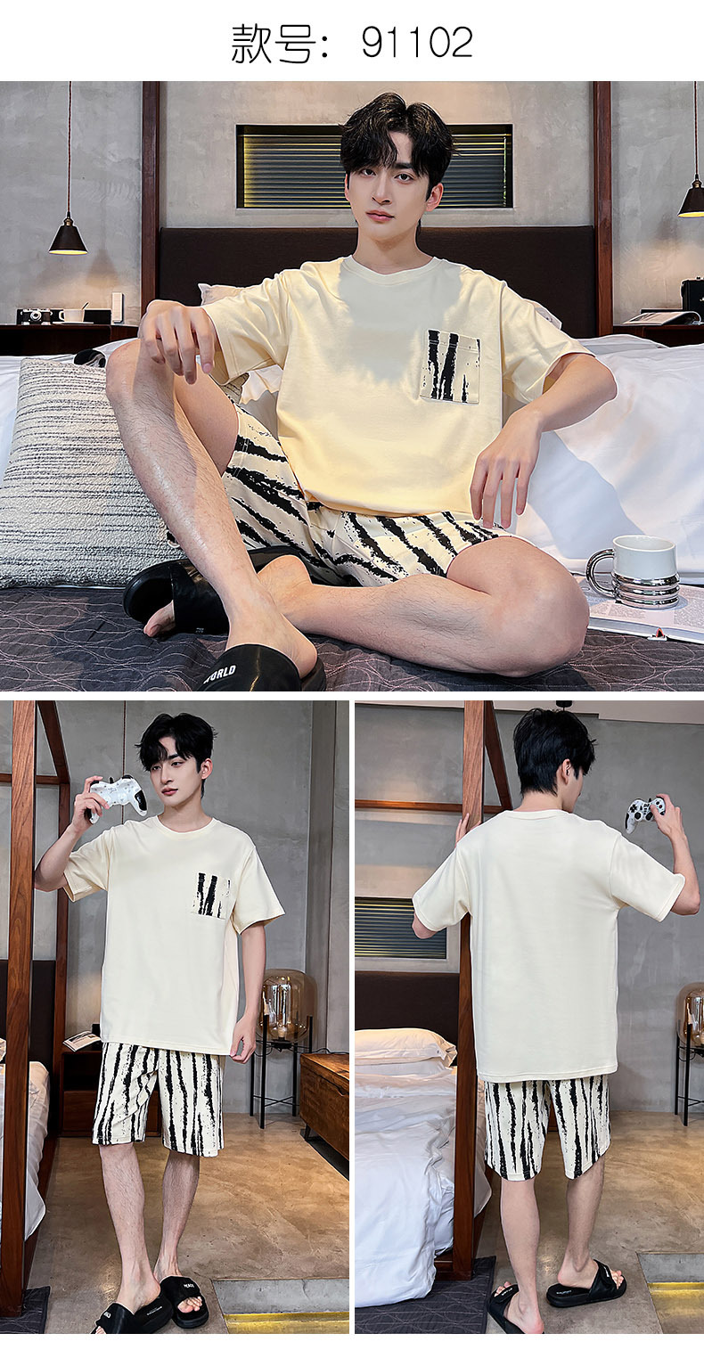 男性用パジャマ、夏の純綿半袖ショーツ、カジュアルホームウェア、大きいサイズのラウンドネック、屋外で着用可能、ゆったりとした若者の綿スーツ