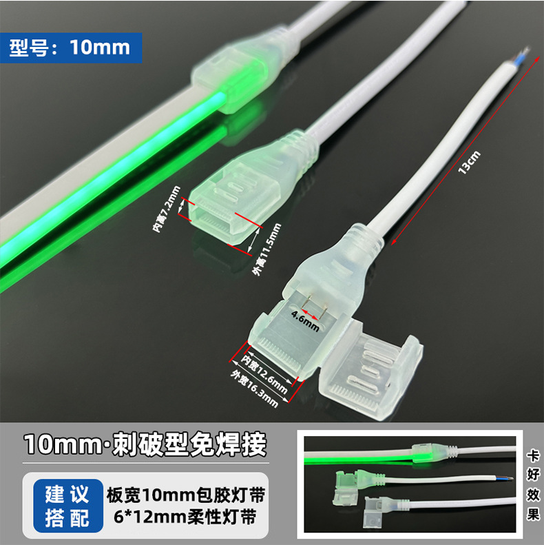 LED低電圧ライトストリップ、溶接不要のランプヘッド、2ピン中間コネクタ、COB直角暗区クリスタルバックルコネクタ