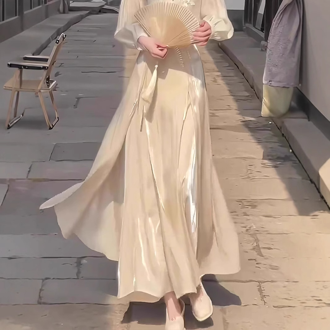 二重半身スカート山本新型文芸夏綿麻高腰復古ロングスカート足首アンドロメダスカート