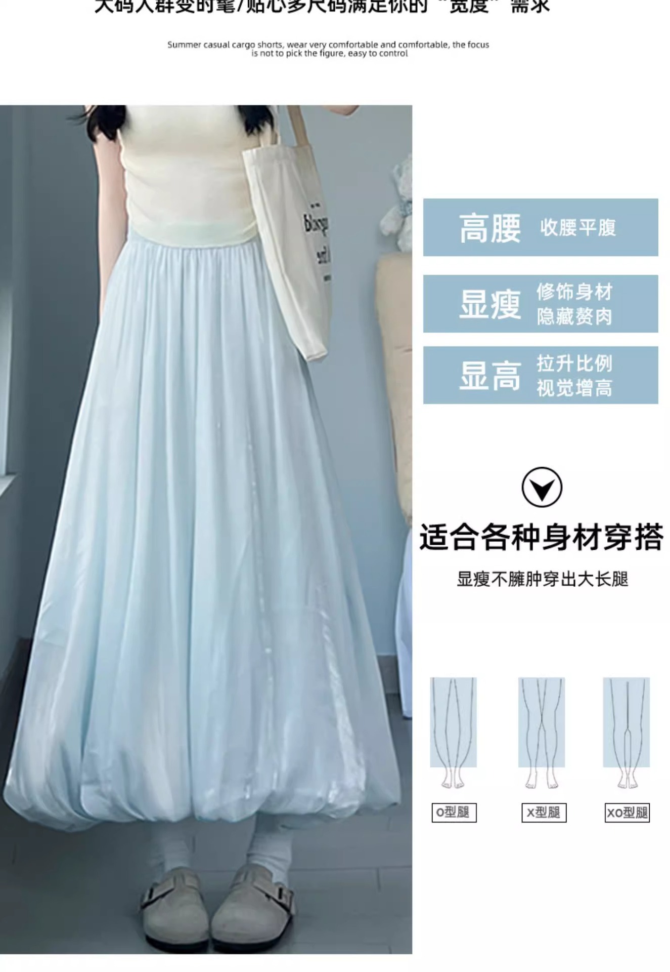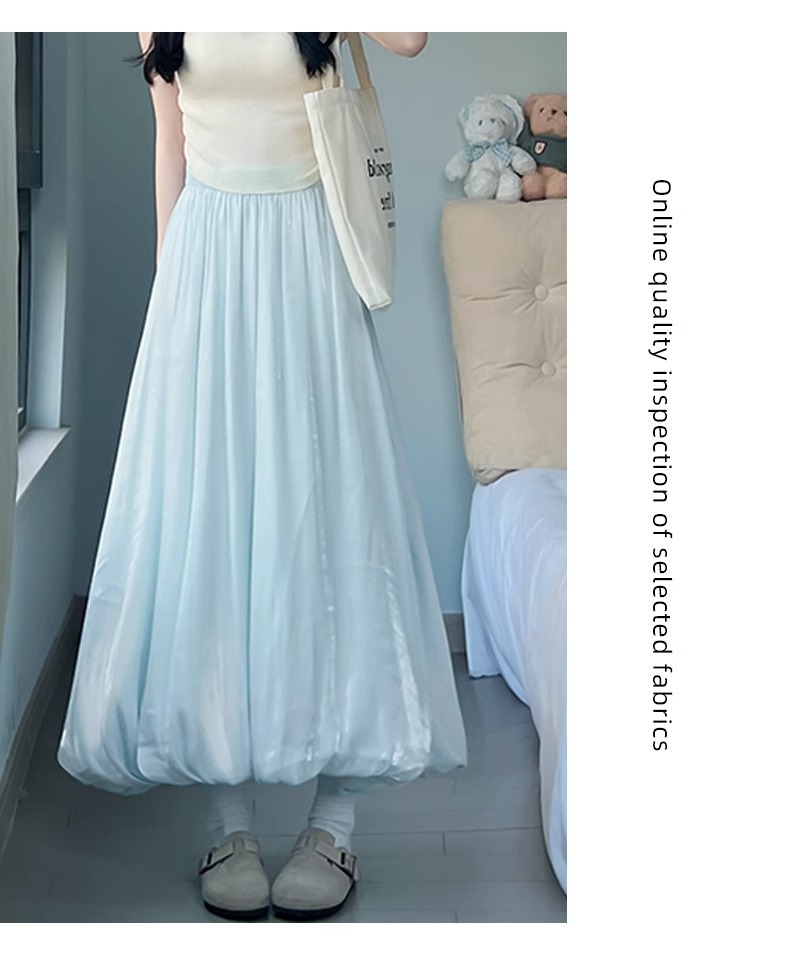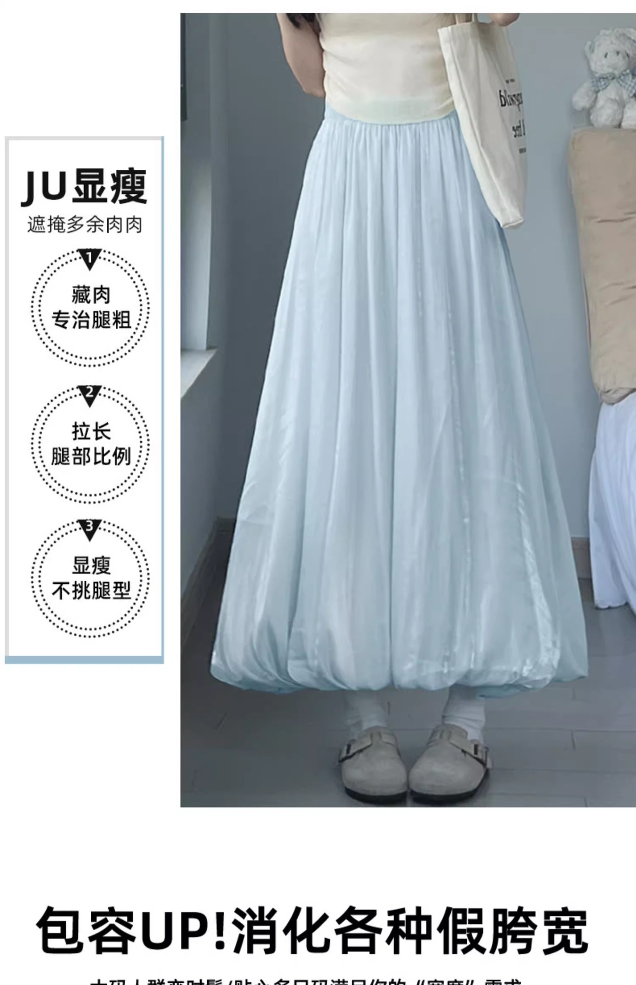 青いストリーマの花のつぼみのスカートの女性の2025夏の新型のハイウエストのa字はやせているストリーマのガーゼのスカートの赫本の風の半身のスカートを現します。