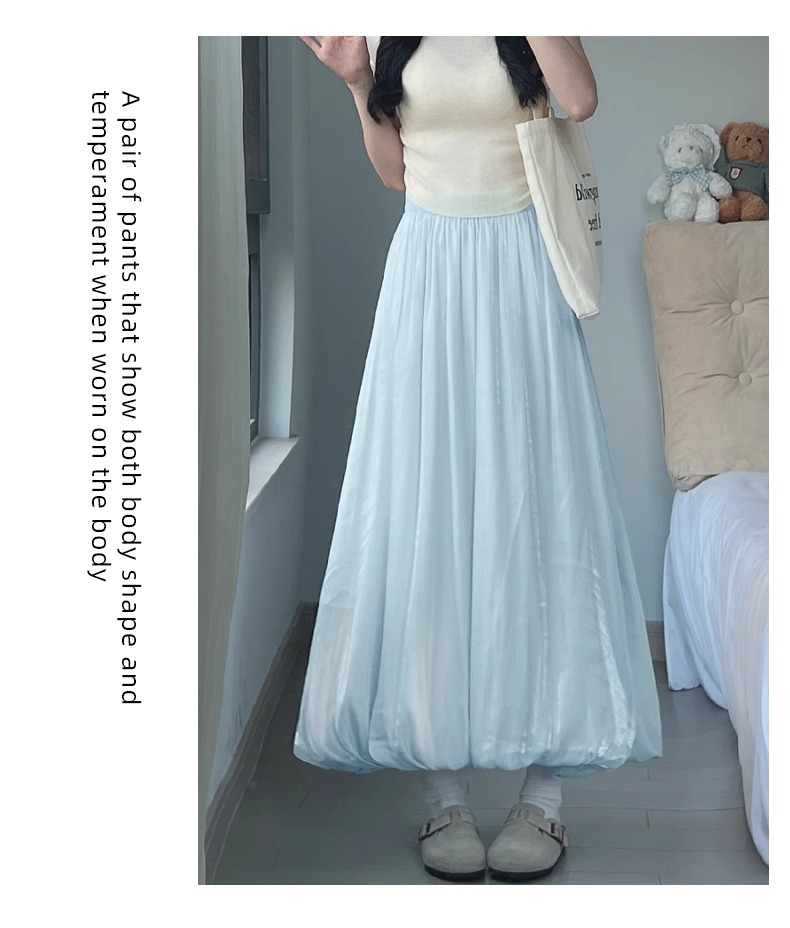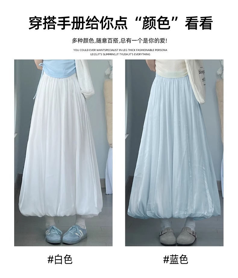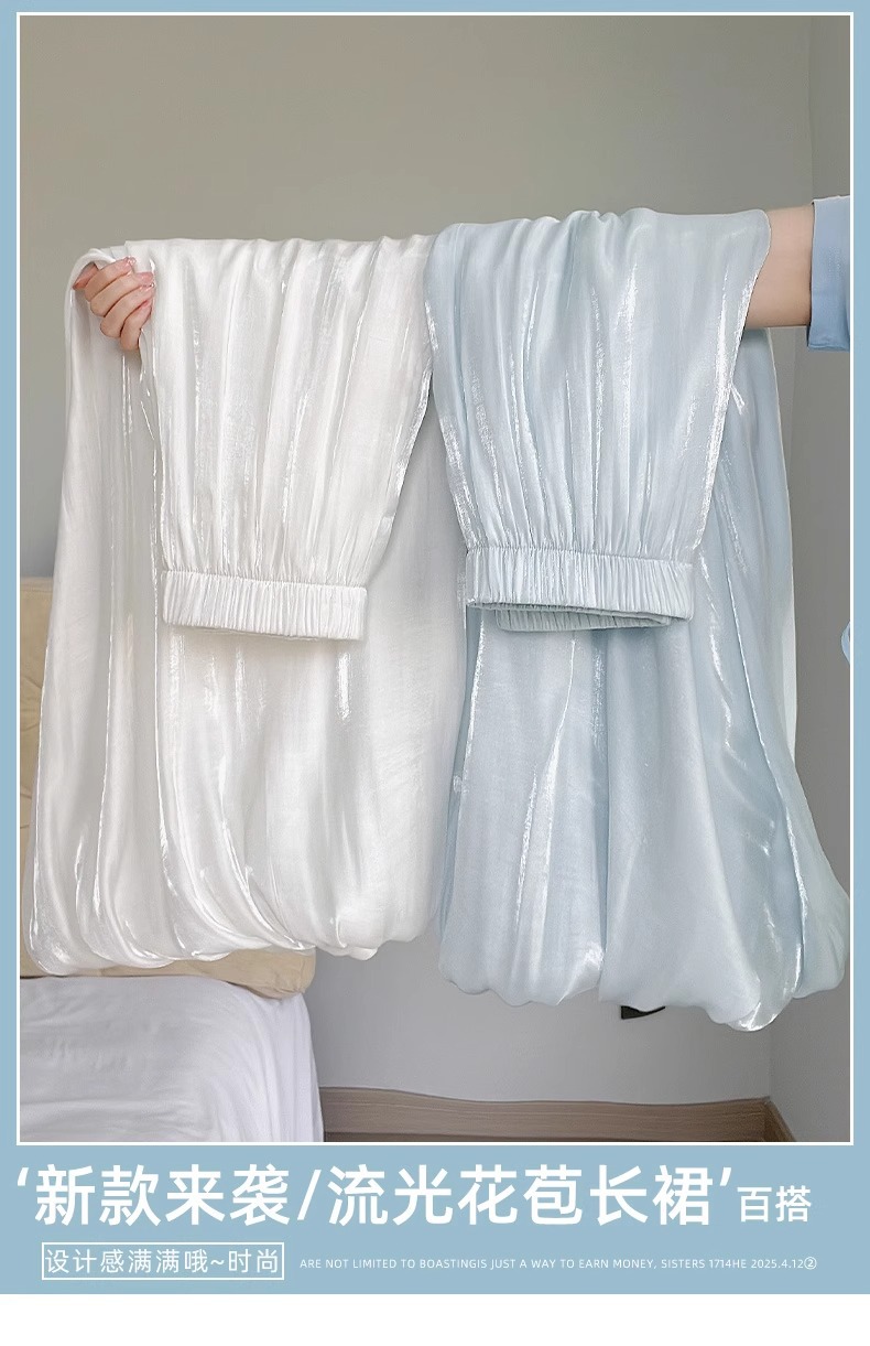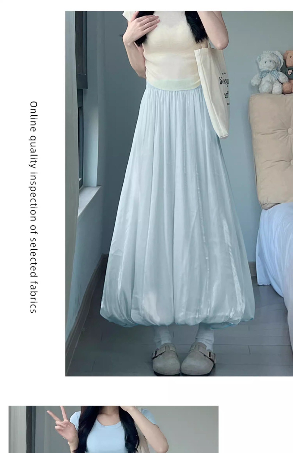 青いストリーマの花のつぼみのスカートの女性の2025夏の新型のハイウエストのa字はやせているストリーマのガーゼのスカートの赫本の風の半身のスカートを現します。
