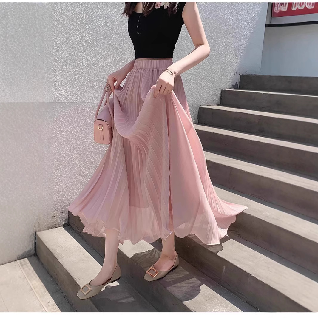 フランスのレトロで優雅でロマンチックな超仙百シワの高い腰の半身のスカートの長い傘のスカートは身を修めてシフォンのスカートを並べます。
