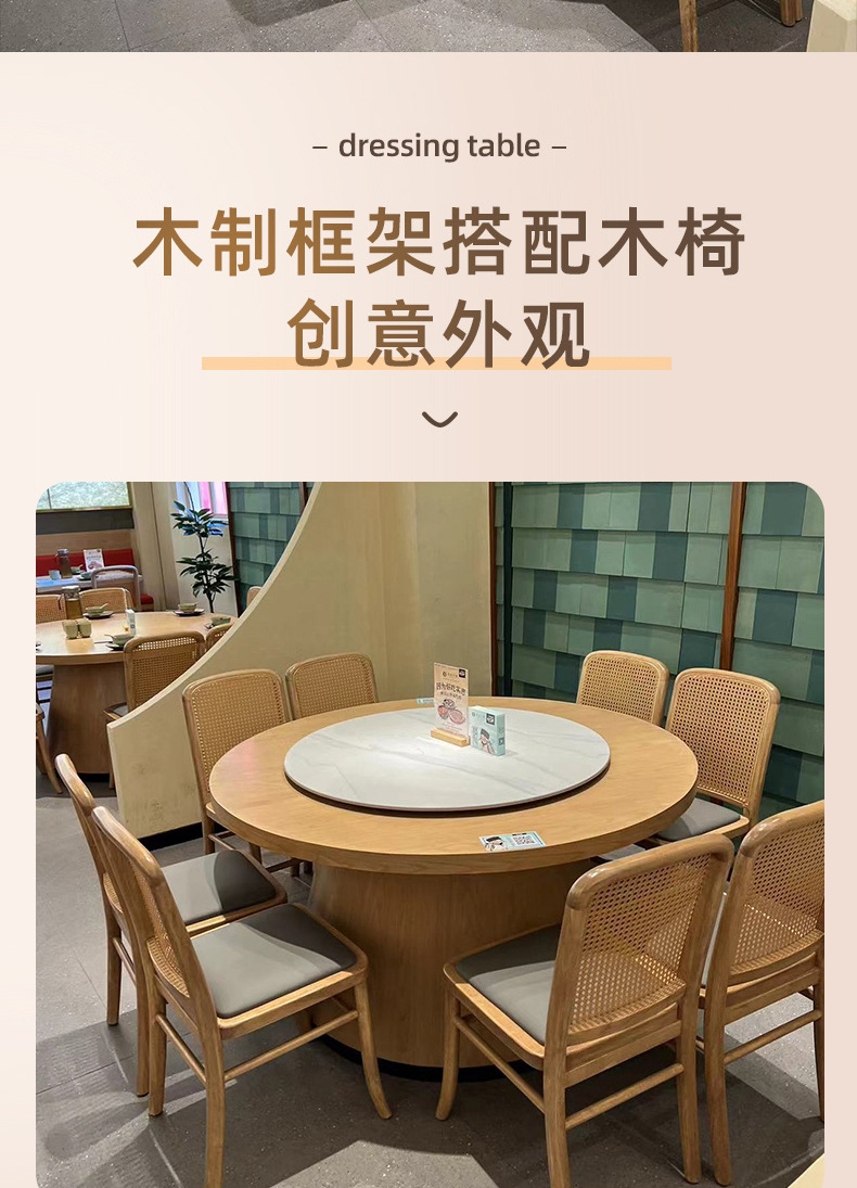 実木大理石食卓商用岩板ホテル円卓藤編テーブルと椅子の組み合わせテーマレストランのカードソファー