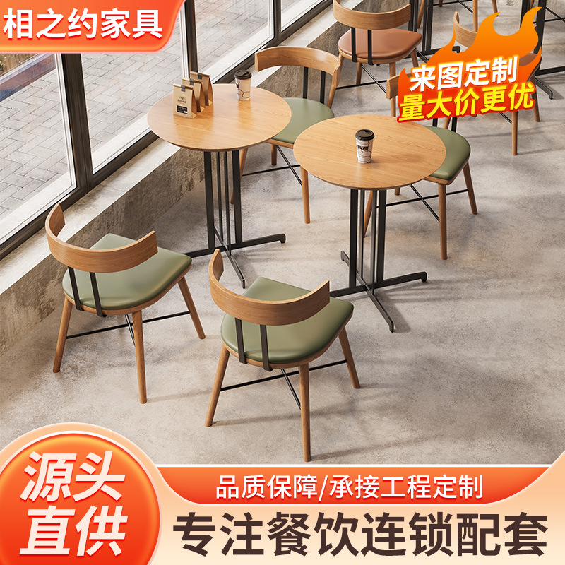 咖啡店实木桌椅组合甜品奶茶店民宿酒店商用休闲接待洽谈沙发卡座