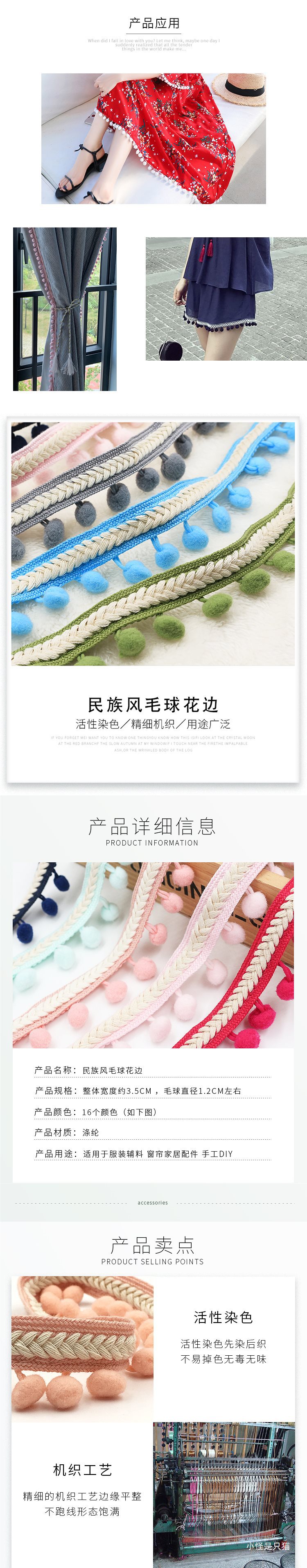 民族風カラー毛玉レースボール直径1.2cm服装補助材料スカートカーテン装飾スポット供給