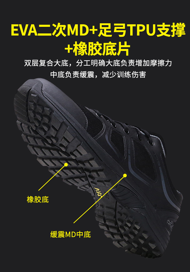 新式体能训练鞋黑色训练跑鞋夏季体能鞋军训作训鞋工作解放胶鞋男