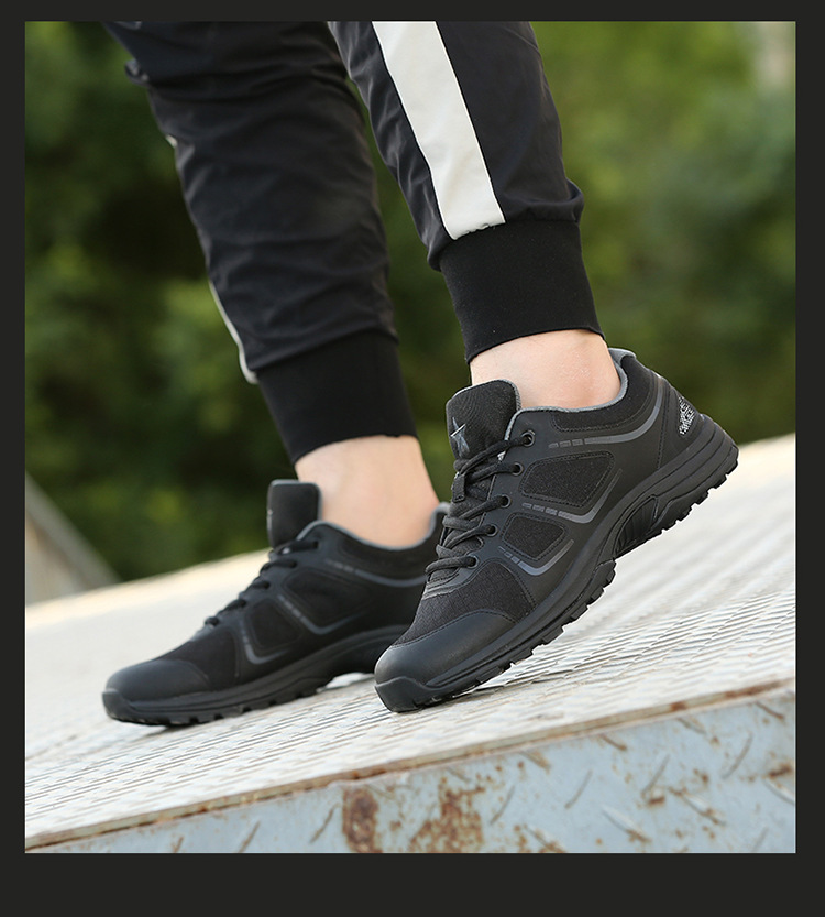 紳士靴、黒のトレーニングシューズ、新しい体力トレーニングシューズ、通気性と軽量のランニングシューズ、消防靴、耐摩耗性と耐久性のある労働保護靴