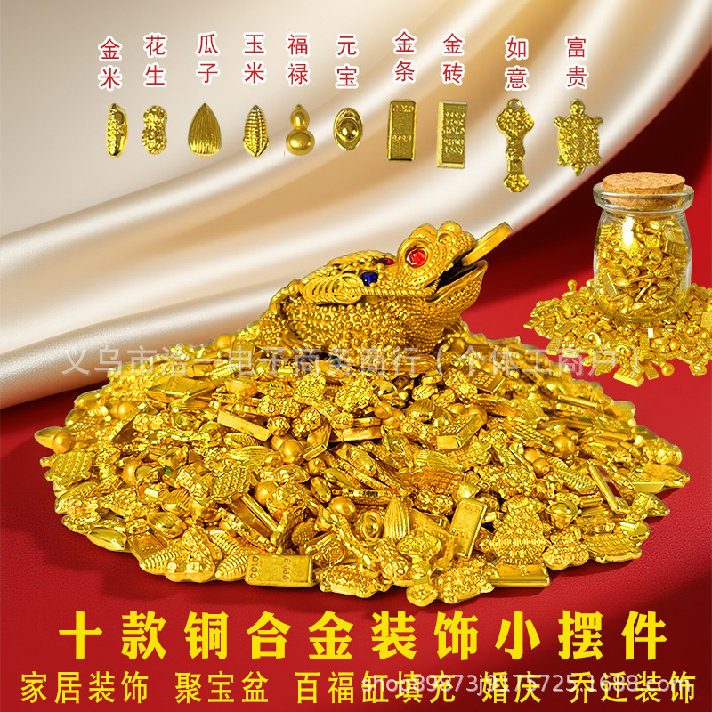 合金吉祥物十全十美小元宝金砖金豆福龟如意大米金豆聚宝盆填充