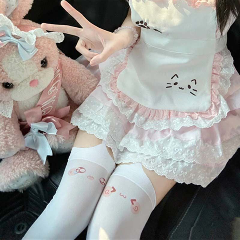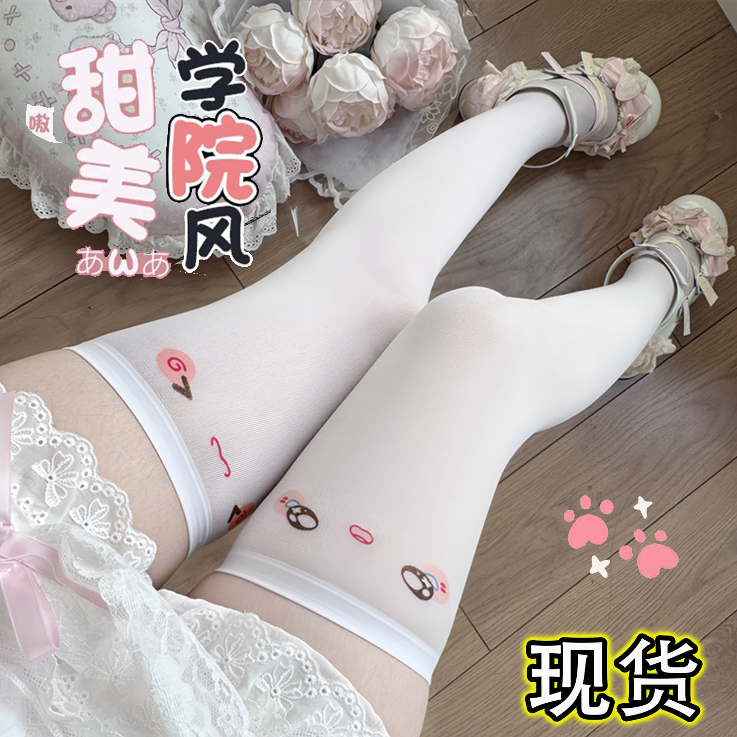 颜文字可爱表情包印花亚文化过膝袜纯欲二次元学院风长高筒白丝袜